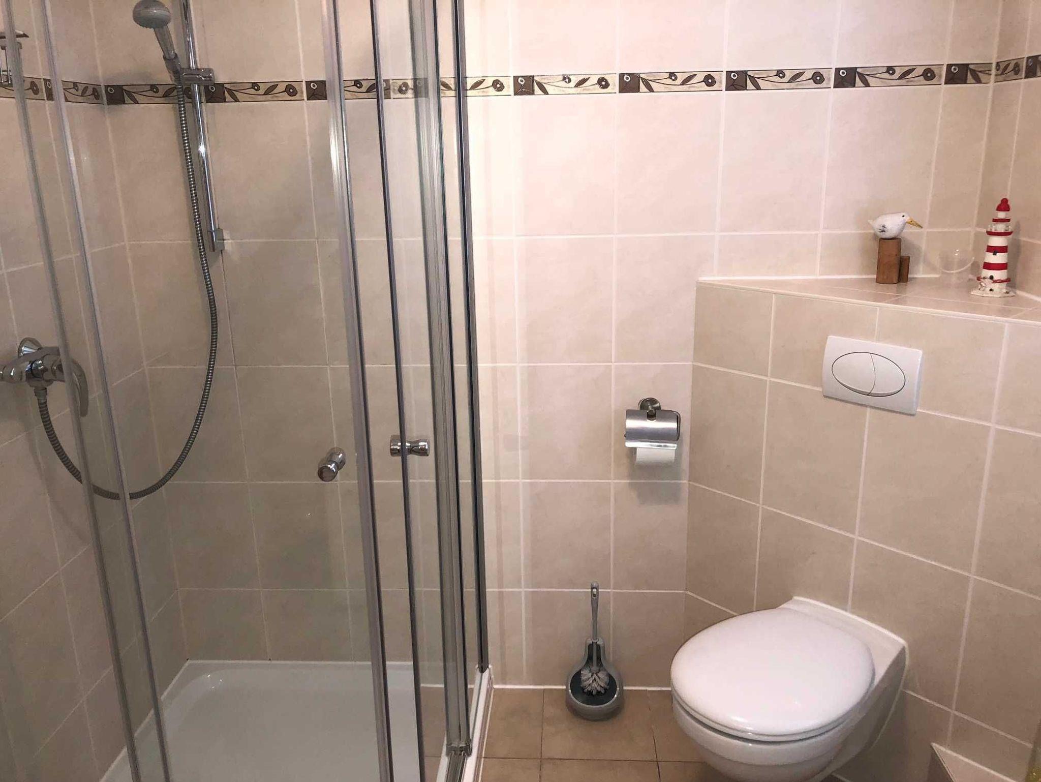 In der Haushälfte Boddenblick, links befindet sich im Bad mit Dusche, WC, Waschplatz, kleiner Whirlpool auch eine Sauna.
