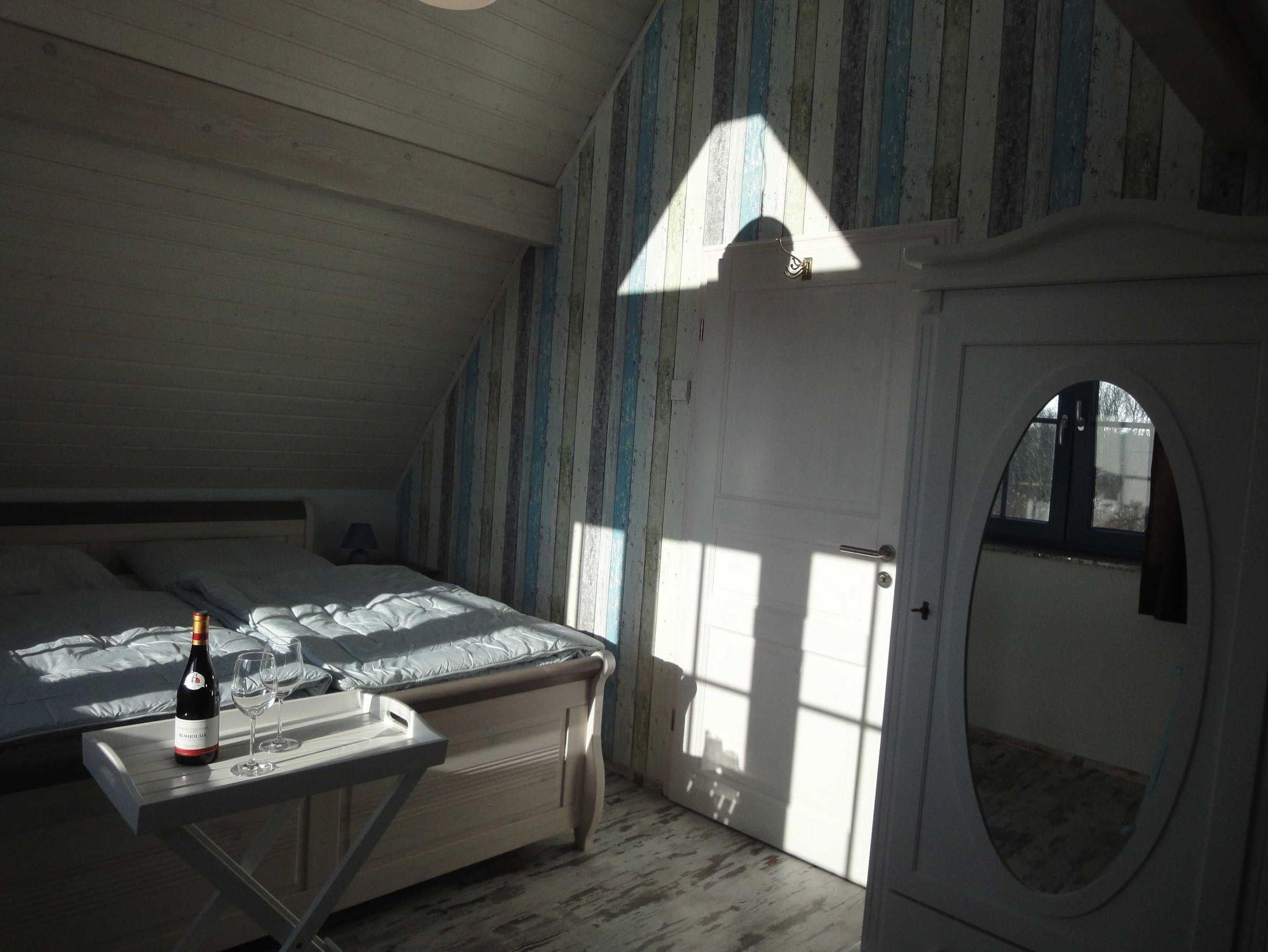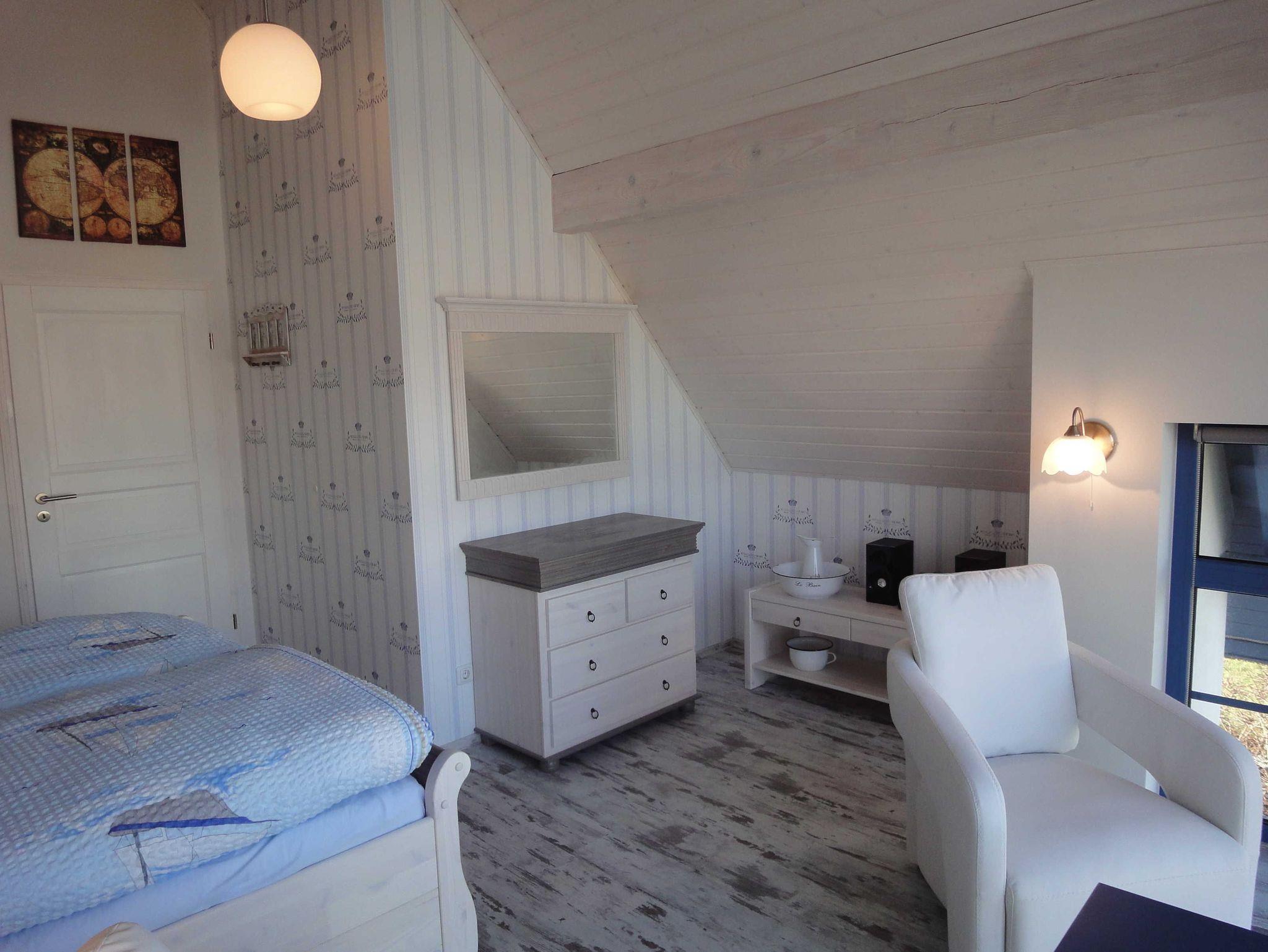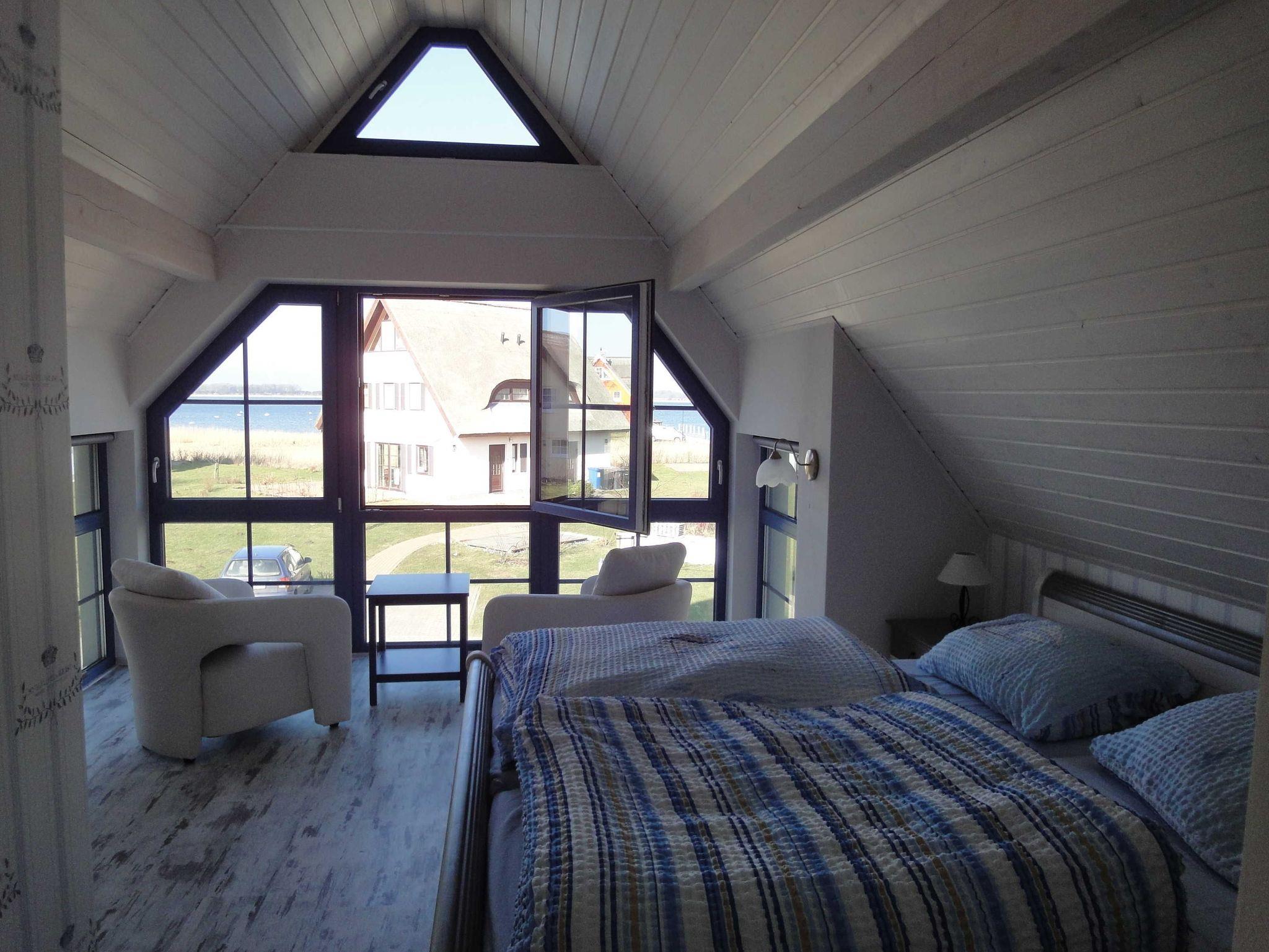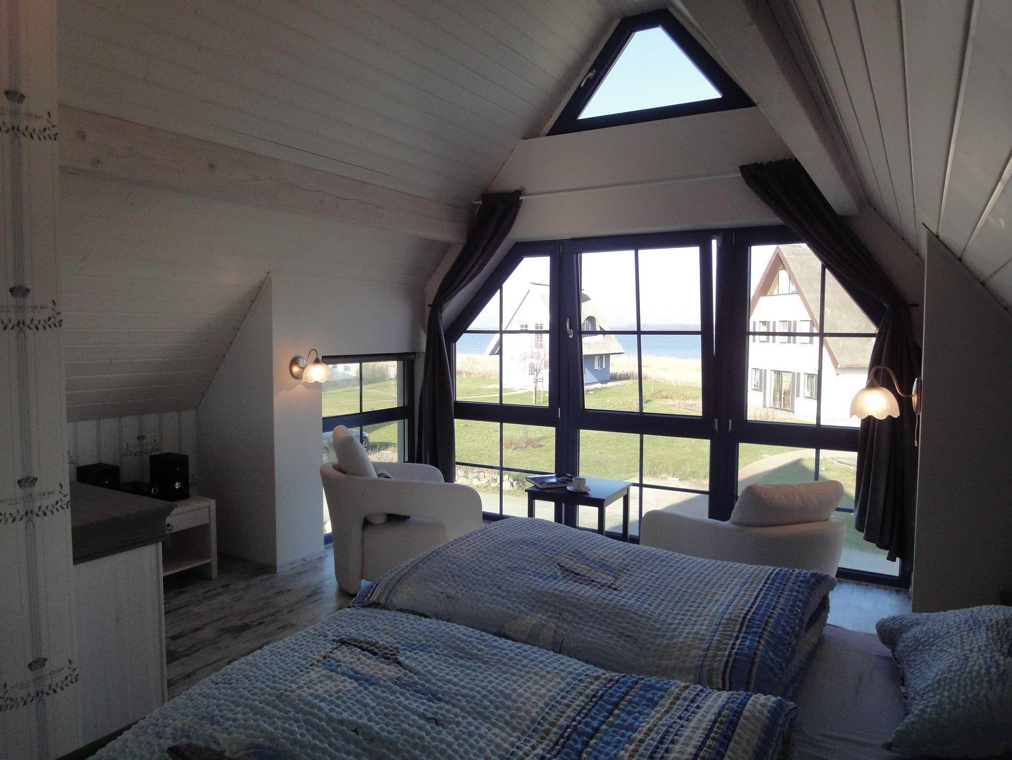 In jedem der zwei Schlafzimmer finden Sie ein bequemes Doppelbett. Das größere Schlafzimmer hat zudem eine gemütliche Sitzecke zum Lesen oder einfach den Blick schweifen lassen über die schöne Boddenlandschaft bis zum Leuchtturm auf Hiddensee.