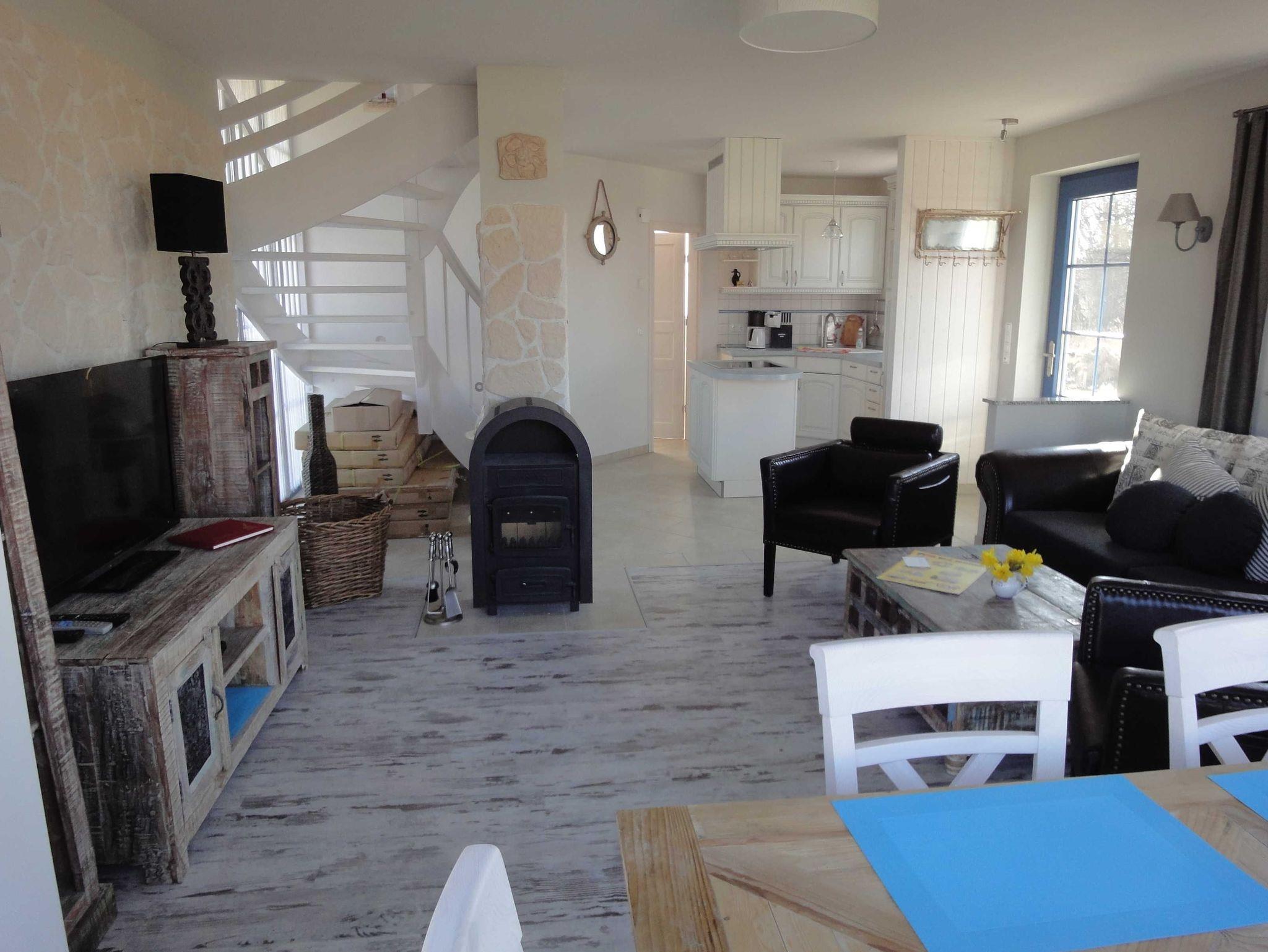 Genießen Sie im gemütlichen Wohnzimmer mit Kamin und geräumiger Sitzecke im Wintergarten Ihren Urlaub. In der Landhausküche mit kleiner Kochinsel finden Sie alles was Sie benötigen um eine deftige Mahlzeit oder ein romantisches Dinner zu zaubern.
