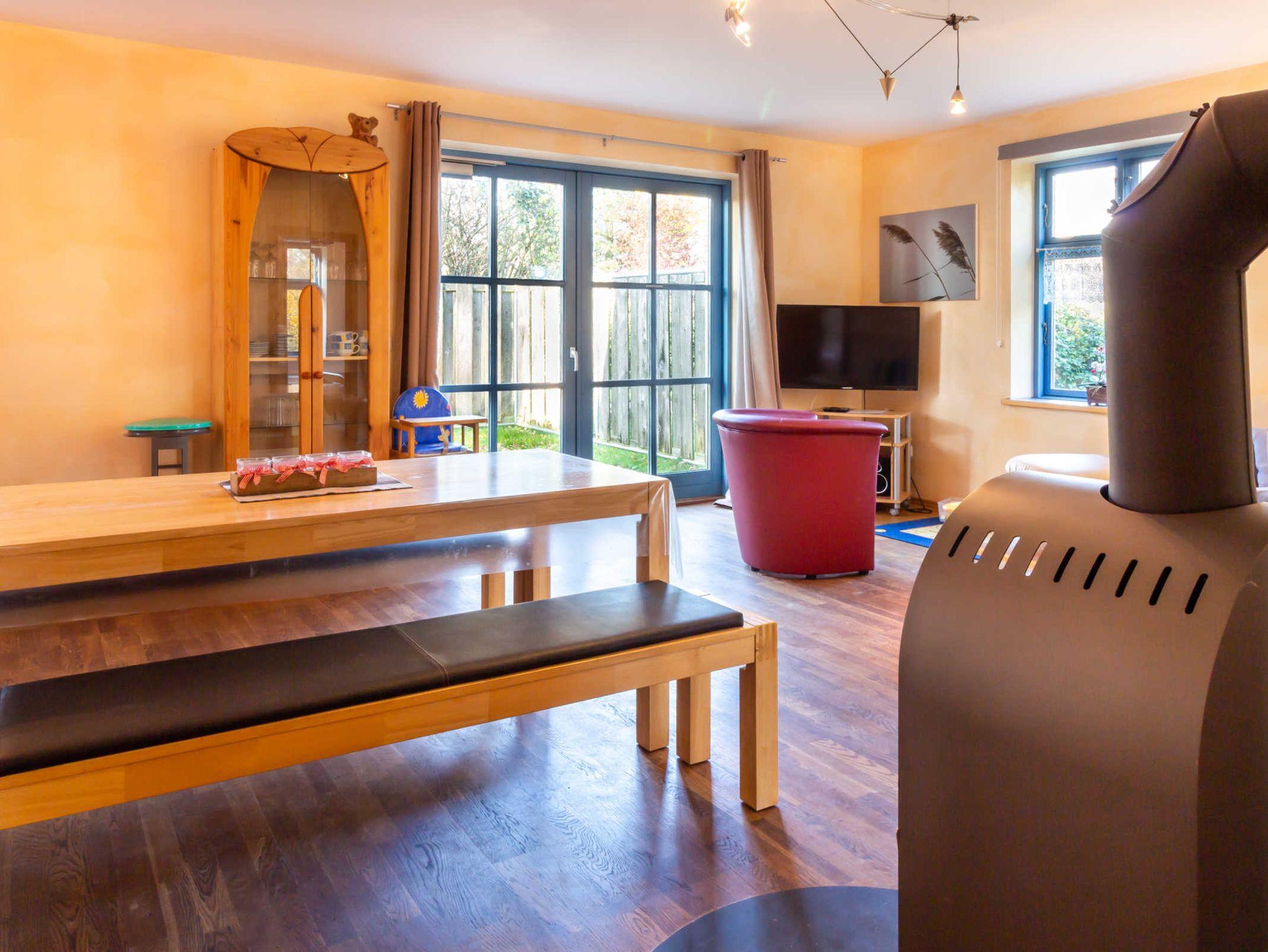 Komfortables Ferienhaus mit Sauna, Kamin und barrierefreiem Erdgeschoss in ruhiger Lage nahe Badestelle.