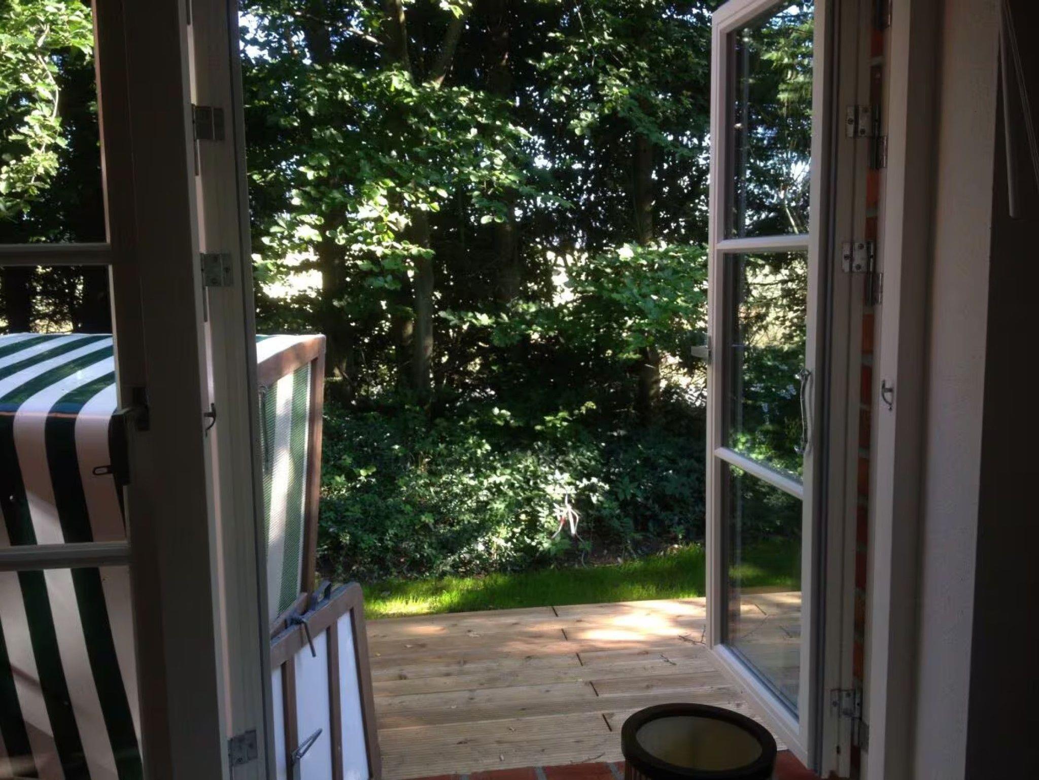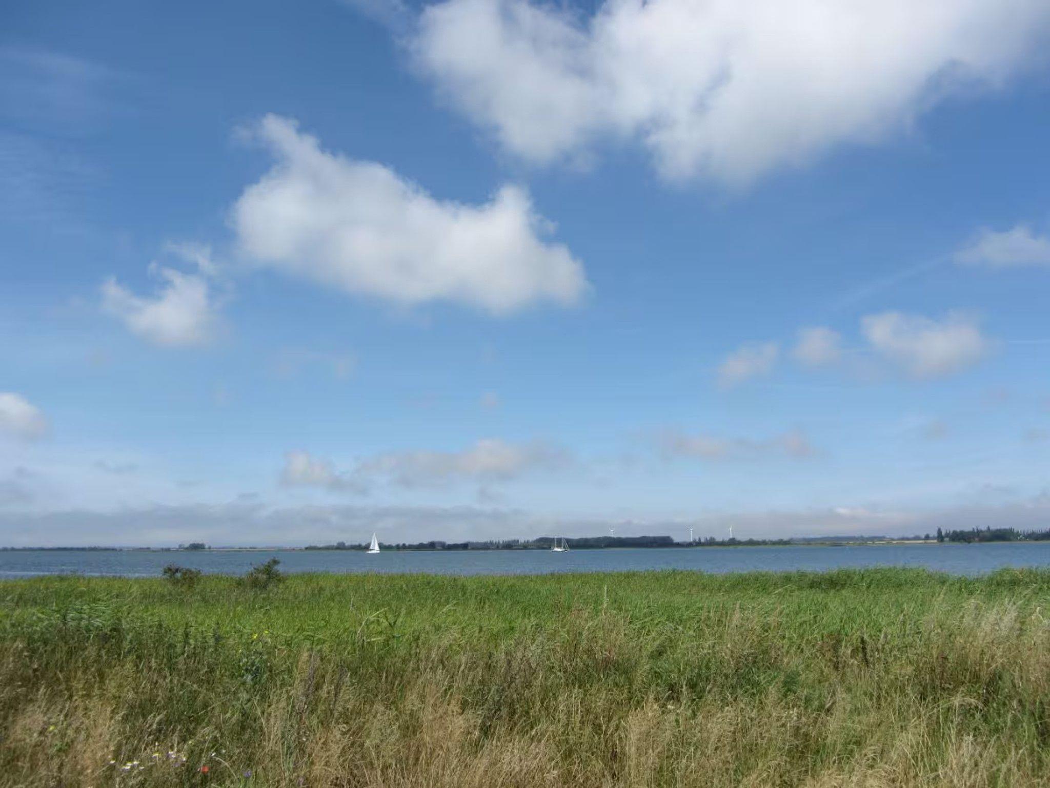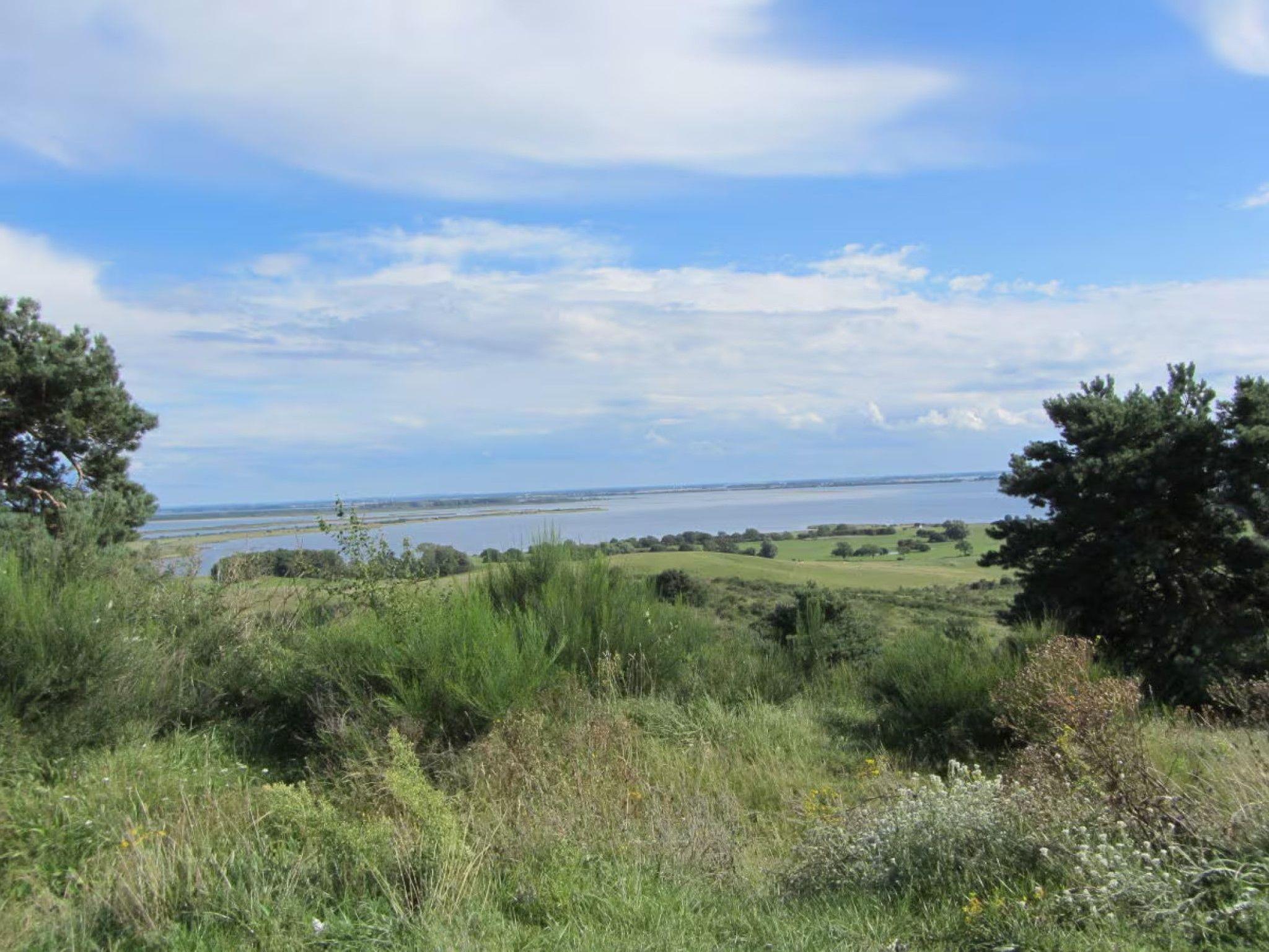 Zum Teil sehr weiter Ausblick in alle Himmelsrichtungen (Bodden, Wiesen, Wald auf 1 km entfernter Anhöhe, Garten).