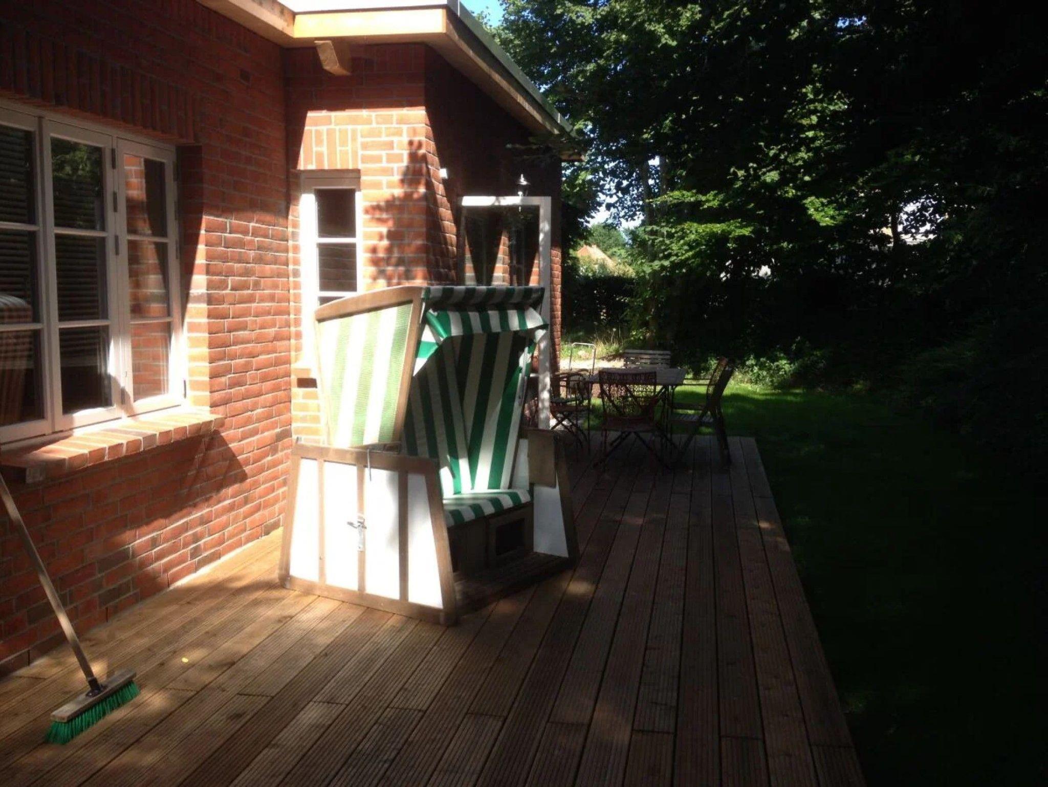 Das Haus ist von einem weitläufigen Garten umgeben, der mit einer großen Wiese und zahlreichen Bäumen ausgestattet ist. In diesem schönen Garten wachsen Obst- und Nussbäume. Direkt an den Garten schließt sich eine etwa 7.000 qm große Wiese an, die bis kurz vor den Bodden reicht. Der Garten wird von zwei imposanten Pappeln sowie Linden, Eschen und Fichten gesäumt, ergänzt durch Buschrosen und Obststräucher. An den Terrassen blühen verschiedene Blumen, die je nach Jahreszeit ihre Farbenpracht entfalten. An heißen Tagen bieten die Bäume, darunter der Walnussbaum, angenehmen Schatten, während die Sonnen-Pavillons zum Verweilen einladen. Auf dem Grundstück befindet sich zudem ein alter Brunnen. Im Sommer erfreuen sich die Besucher an der Vielzahl von Singvögeln, während Greifvögel und in der Dämmerung auch Waldkäuze und Fledermäuse um das Haus kreisen.