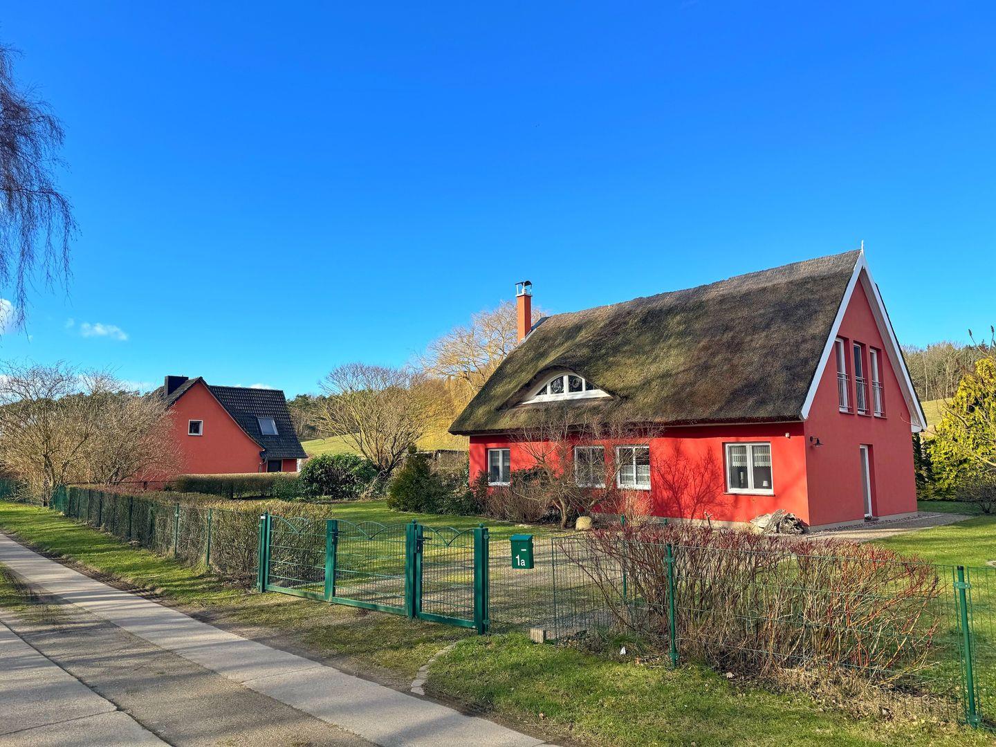 Ruhiges, reetgedecktes Ferienhaus am Lebbiner Bodden mit Sauna, Pool und großem Grundstück für erholsame Tage in der Natur.