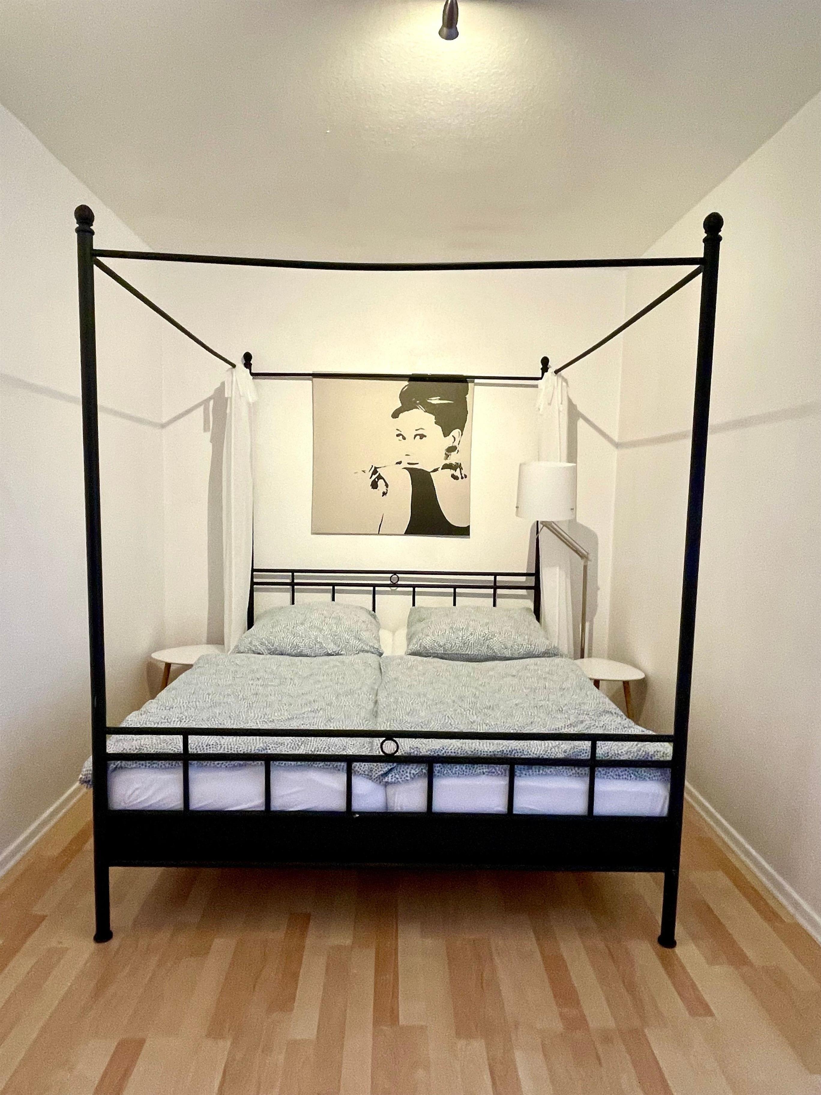 heller Boden,, Ledersofas, Fernsehen, Doppelbett