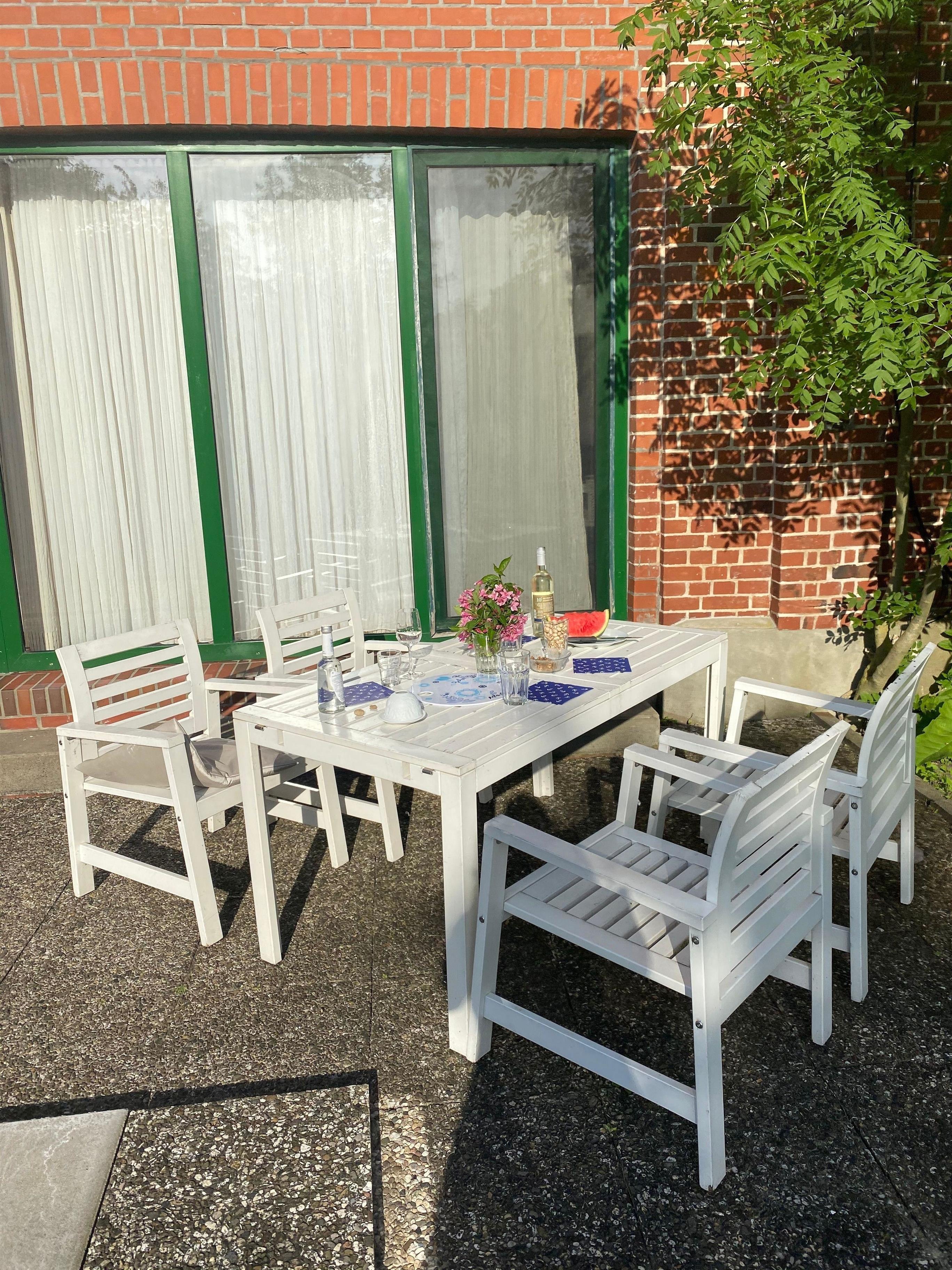 Nur 500 Meter entfernt findet ihr den schönen Hafenort Lemkenhafen mit 3 Restaurants und einem Café/Bar. Im Café Lütten bekommt ihr nicht nur Frühstück, sondern könnt auch Brötchen vorbestellen. Ein kleines Stück an den Feldern entlang auf einem sicheren Weg direkt zum Meer, um sich frische Brötchen zu holen – ein perfekter Start in den Tag. Am Abend solltet ihr den Weg wiederholen, um im Lütten im Strandkorb direkt am Meer einen Sundowner zu nehmen und vielleicht vorher in der Aalkate noch leckeren Fisch zu essen.