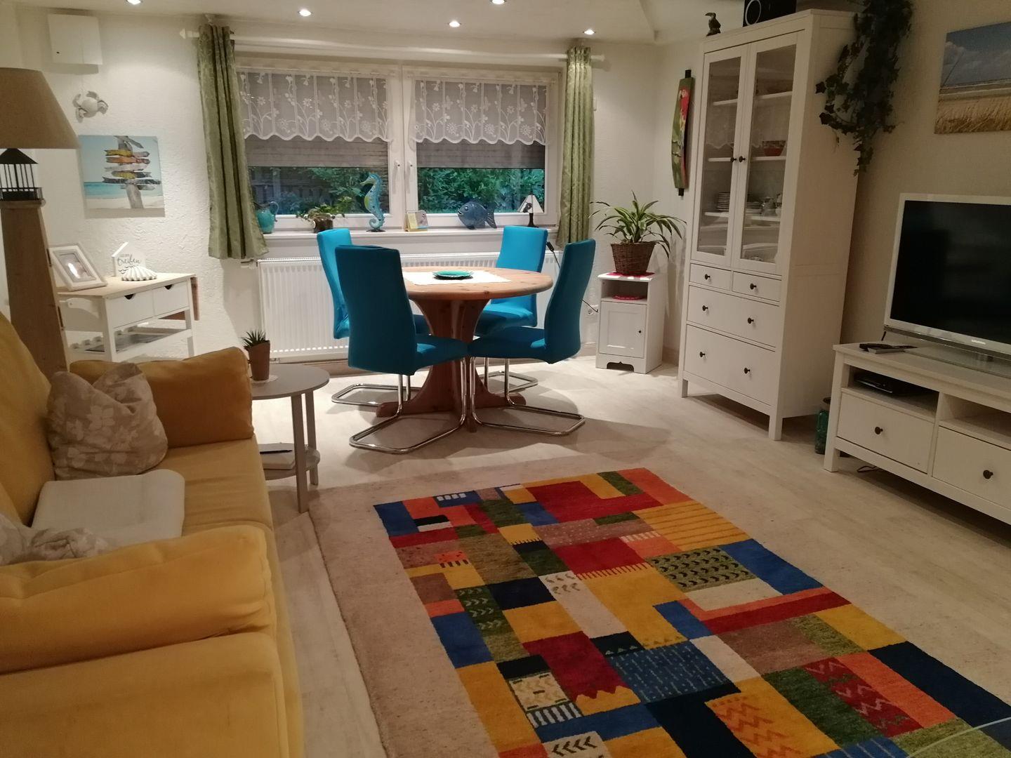 hier erwartet Sie eine liebevoll eingerichtete 2-Raum-Nichtraucher-Ferienwohnung im Souterrain, ca. 38 qm groß und für 2 Personen eingerichtet. Im Schlafraum gibt es ein Bett (1,4m x 2m) mit 2 Matratzen. Im Wohnraum befindet sich ebenfalls eine Schlafcouch (1,6m x 2m). Die kleine Küche ist komplett ausgestattet. Die Ferienwohnung ist nur über eine Treppe erreichbar. Zum Sandstrand geht man nur ca. 8 Minuten, Bäcker und Restaurant sind in nur 4 Min. zu erreichen :) Stellplatz am Haus. Gartennutzung mit überdachter Sitzecke, es darf auf der Rasenfläche auch gegrillt werden.
