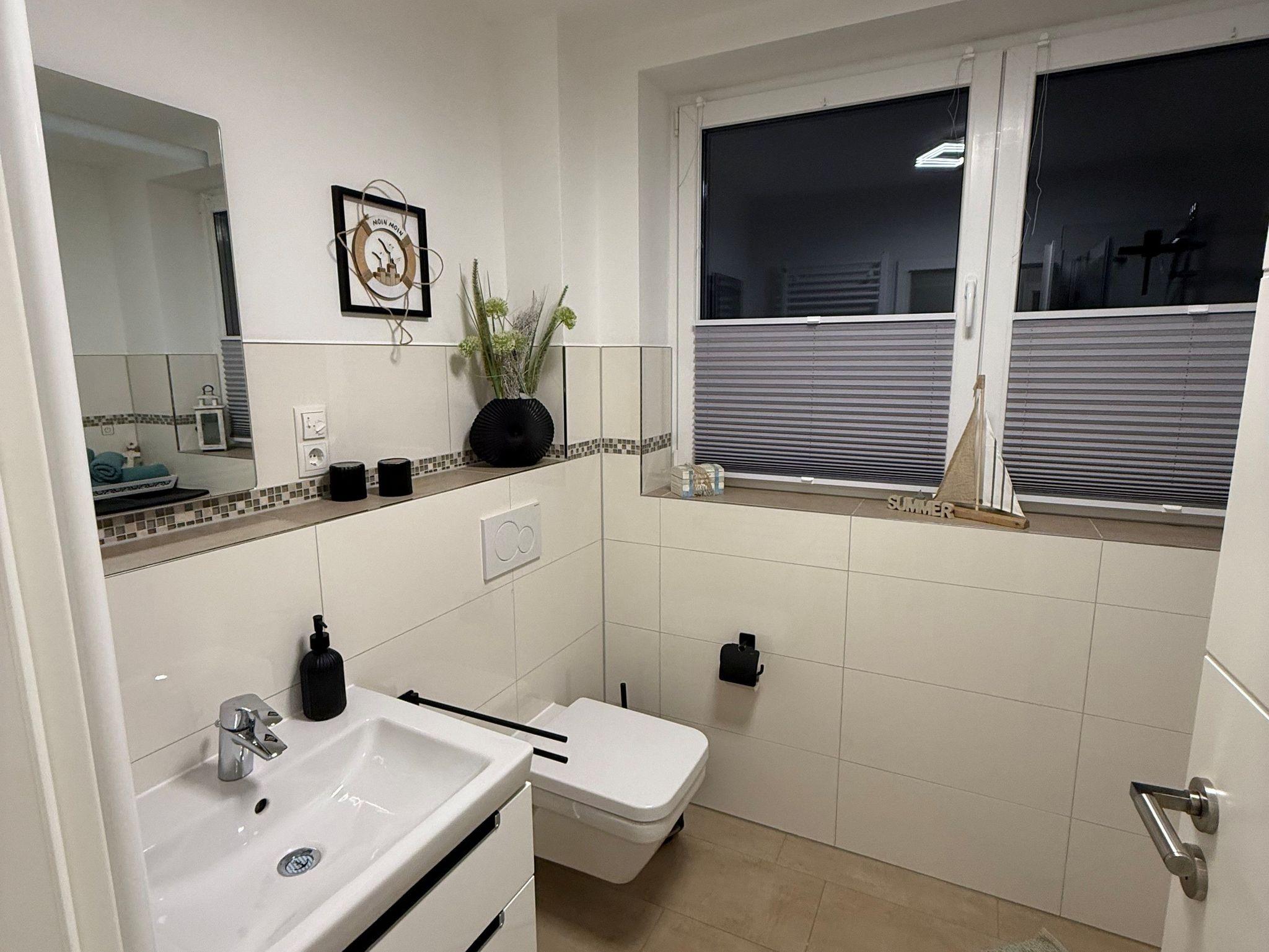 Moderne, maritim eingerichtete Ferienwohnung mit Balkon, zentral in Neustadt in Holstein, nahe Hafen und Strand.