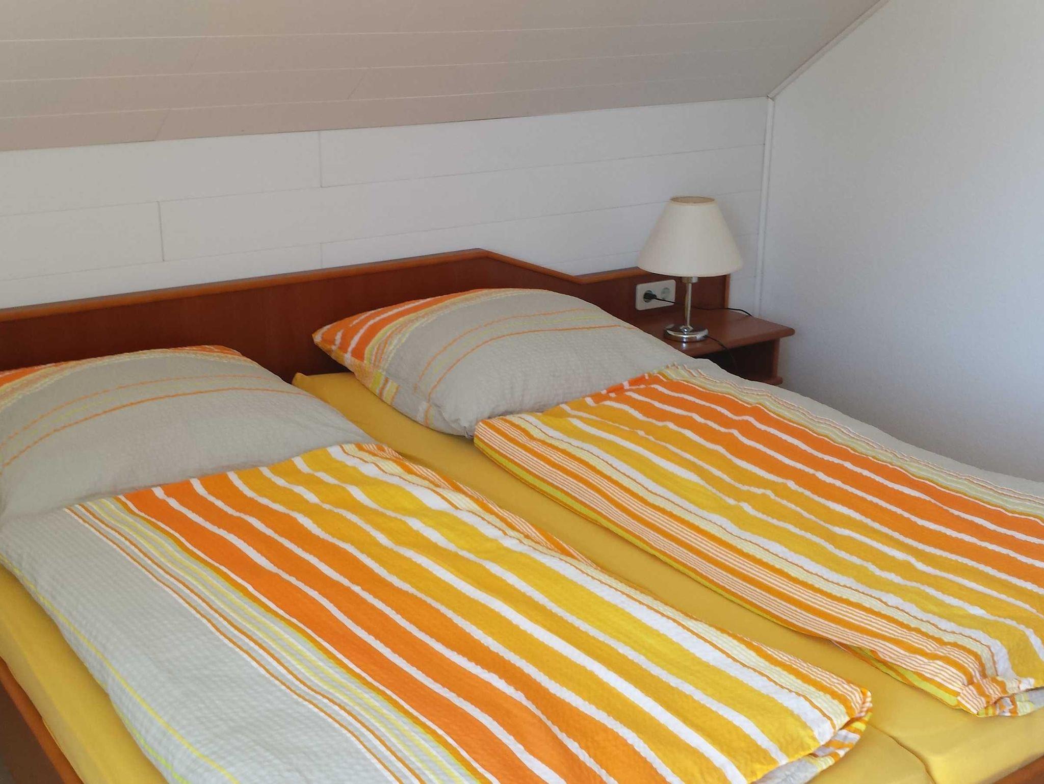 Das Elternschlafzimmer verfügt über ein großes Kieferdoppelbett und einen Kleiderschrank. Das zweite Schlafzimmer ist mit zwei Einzelbetten sowie einem Kleiderschrank ausgestattet.