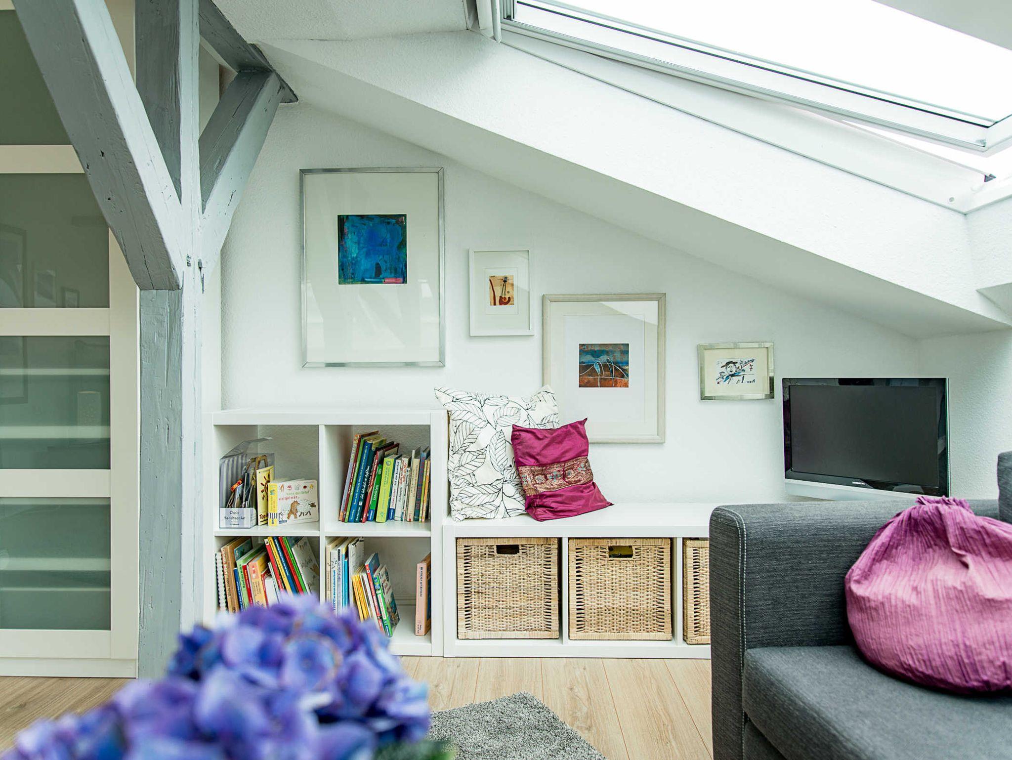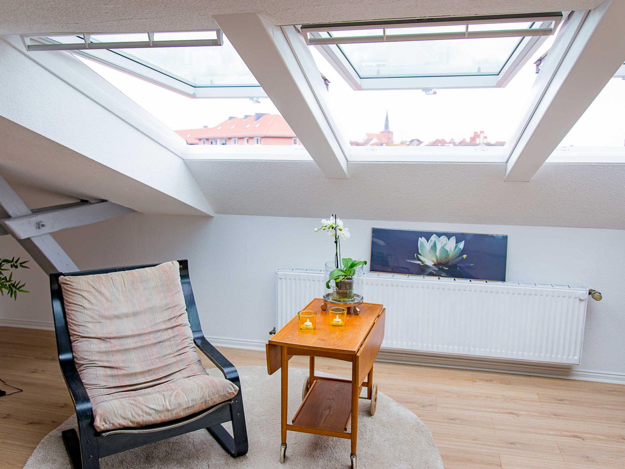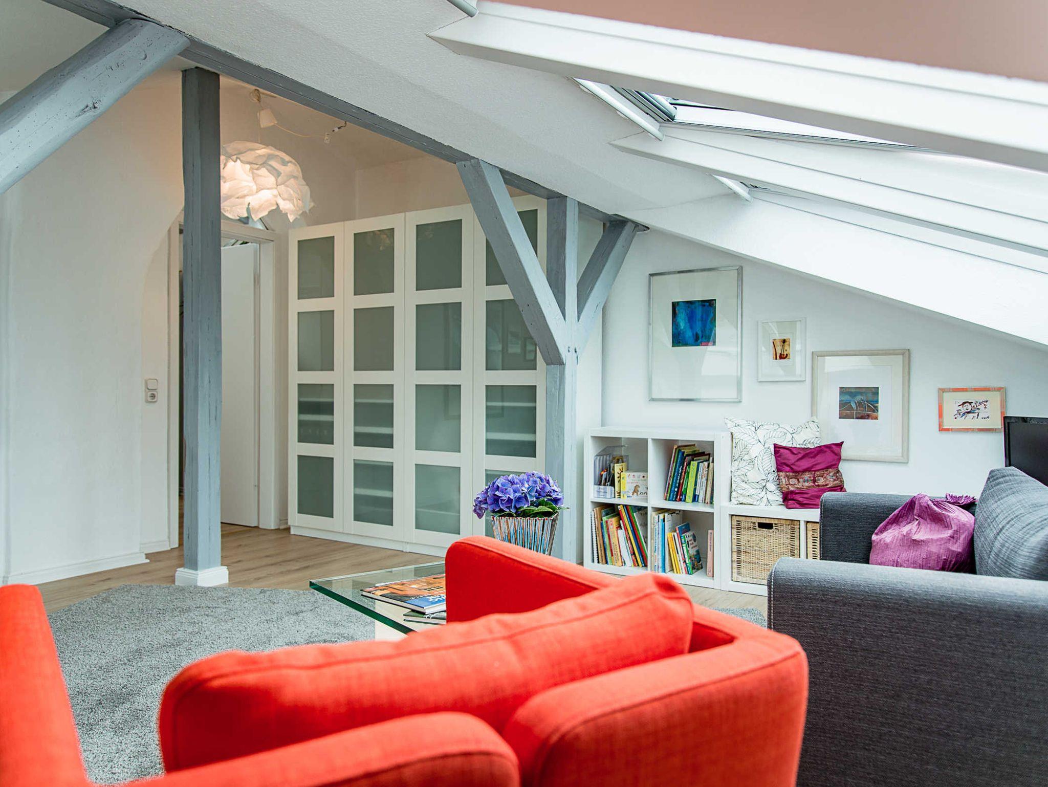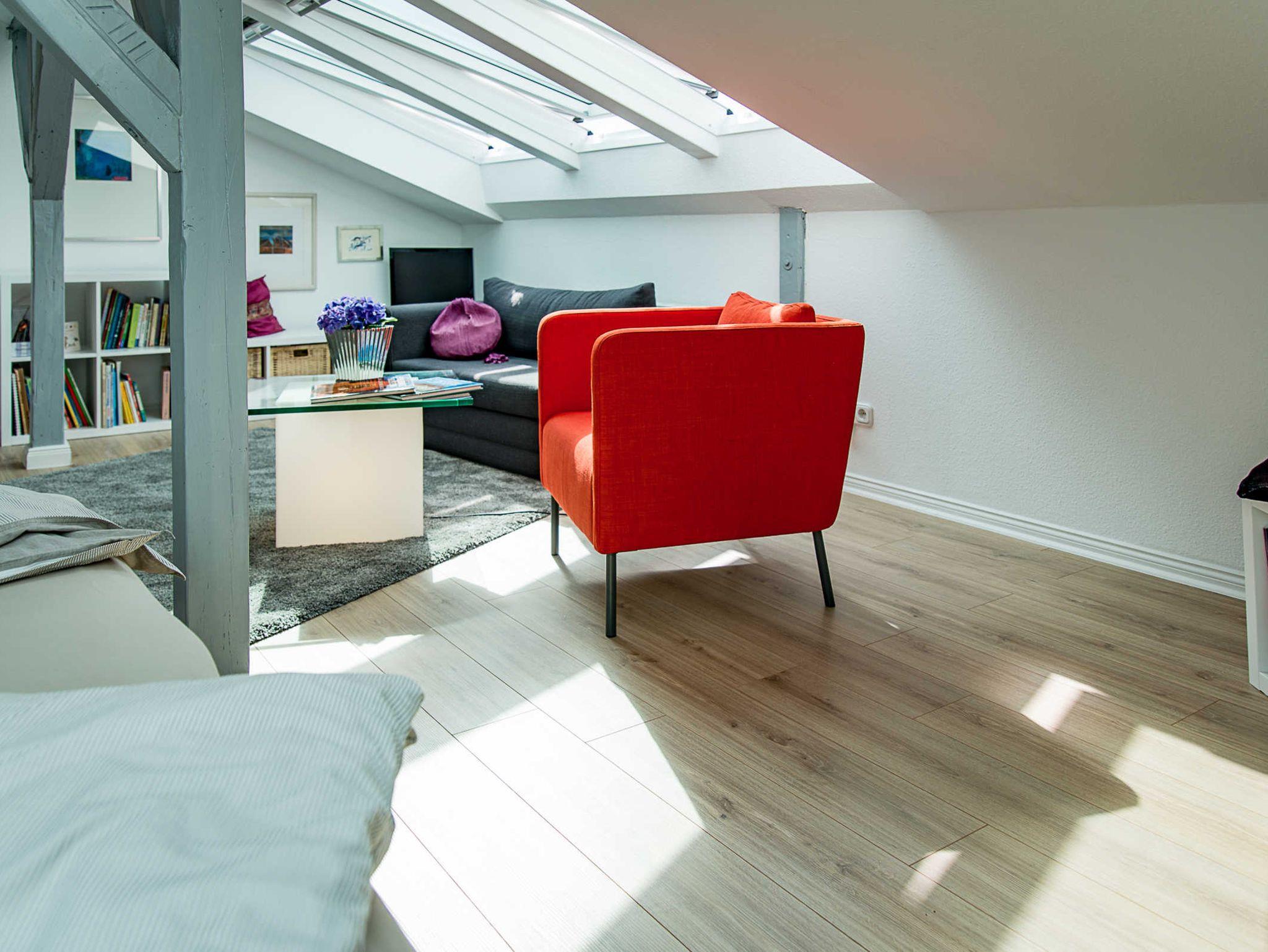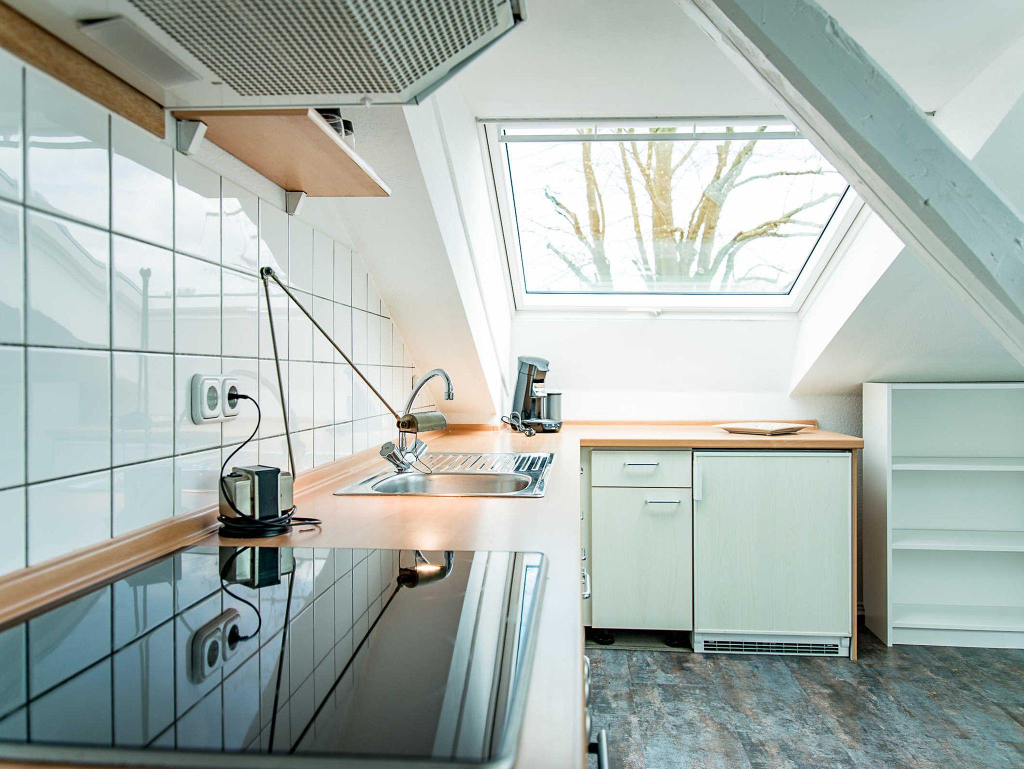 Ein Schlafwohnzimmer, ein Wohnzimmer, eine separate Küche, ein Badezimmer und ein Eingangsbereich (Flur) befinden sich im Dachgeschoss (2. Stock).