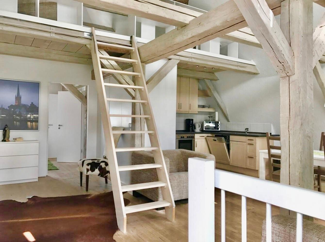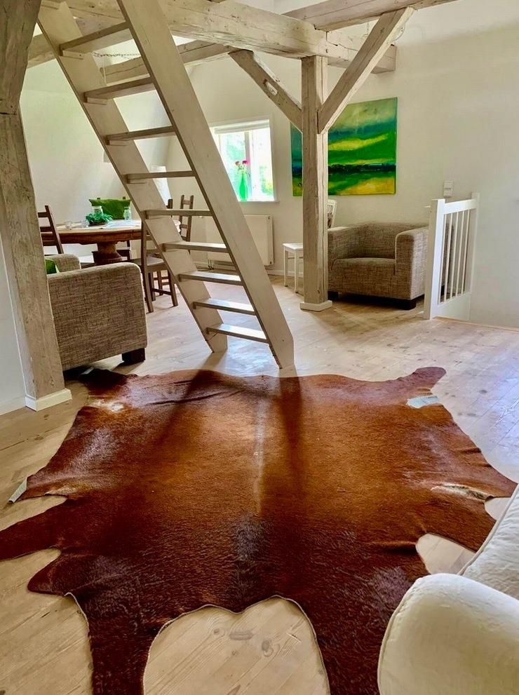 Unsere sogenannte Remise beinhaltet zwei Ferienwohnungen. Die angebotene Ferienwohnung befindet sich im Obergeschoss und ist die Größere der beiden Wohnmöglichkeiten.