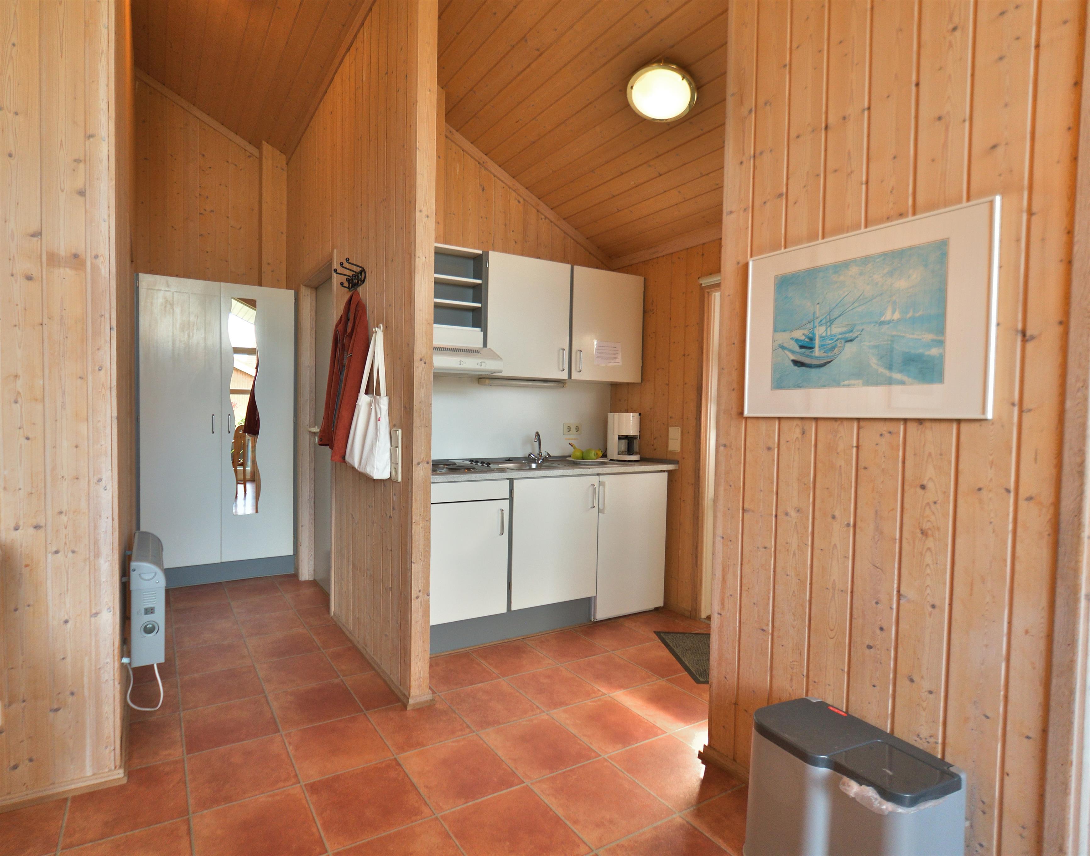 Gleich im Eingangsbereich Ihres Ferienhauses finden Sie eine kleine Küche mit Kühlschrank, Elektroherd, Backofen, Kaffeemaschine, Toaster, Wasserkocher sowie Geschirr und Besteck. Von dort gelangen Sie in den gemütlichen Wohnraum mit Sitzecke, Essecke, TV und Radio. Dieser gesamte Bereich ist mit hochwertigem Laminat-Fußboden ausgestattet.