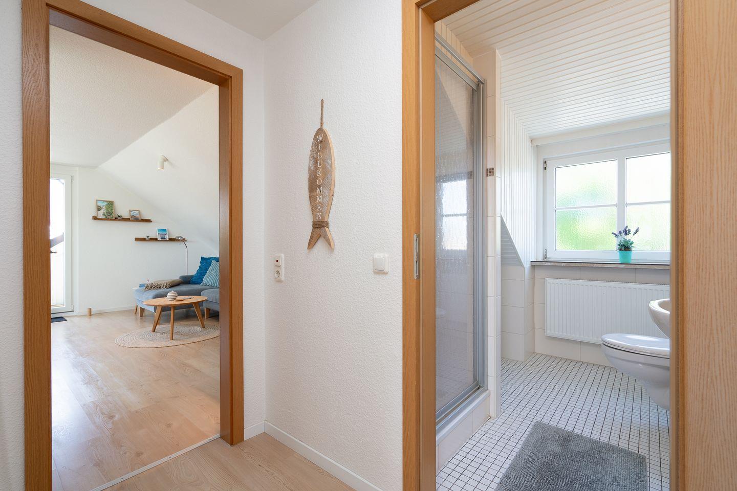 Moderne Dachgeschosswohnung mit Meerblick und Balkon in Pelzerhaken, nur 100 m vom Strand entfernt.
