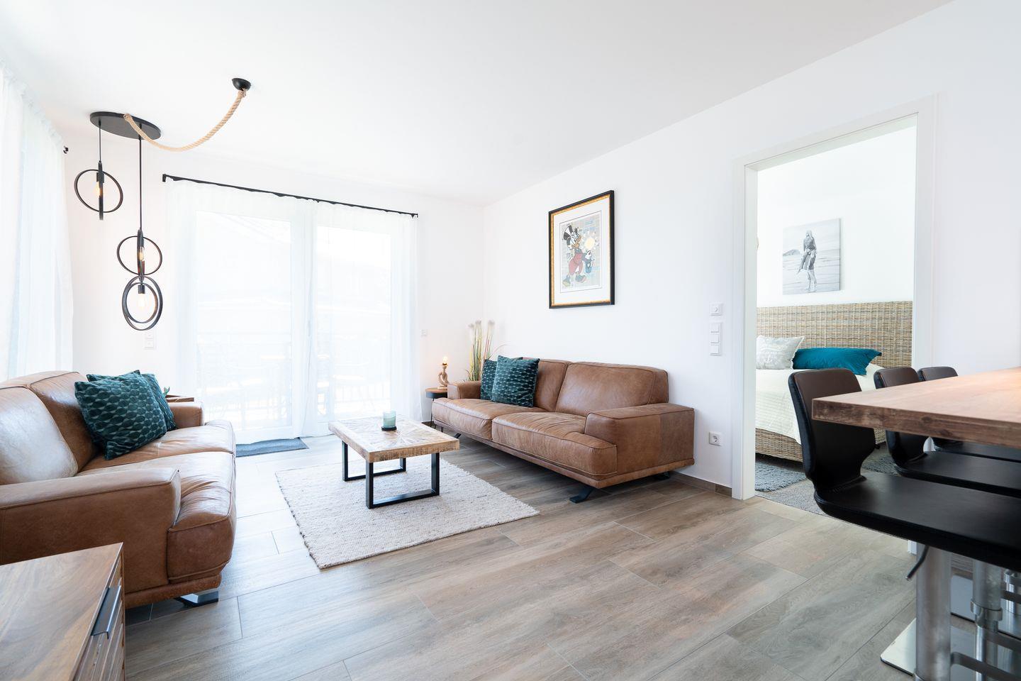 Moderne 3-Raum-Ferienwohnung mit Balkon nahe Yachthafen in Neustadt in Holstein, WLAN, Parkplatz und hochwertiger Ausstattung.