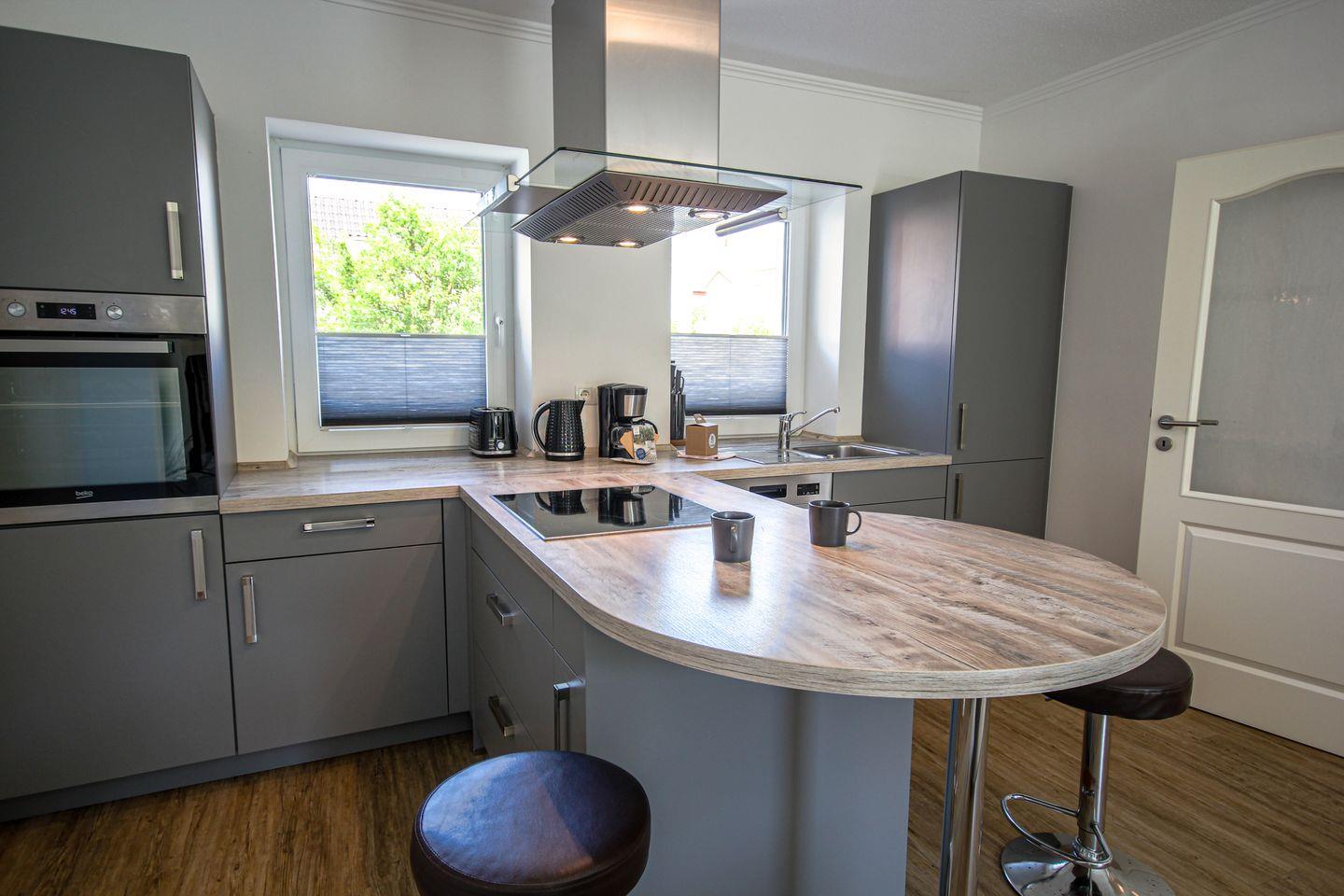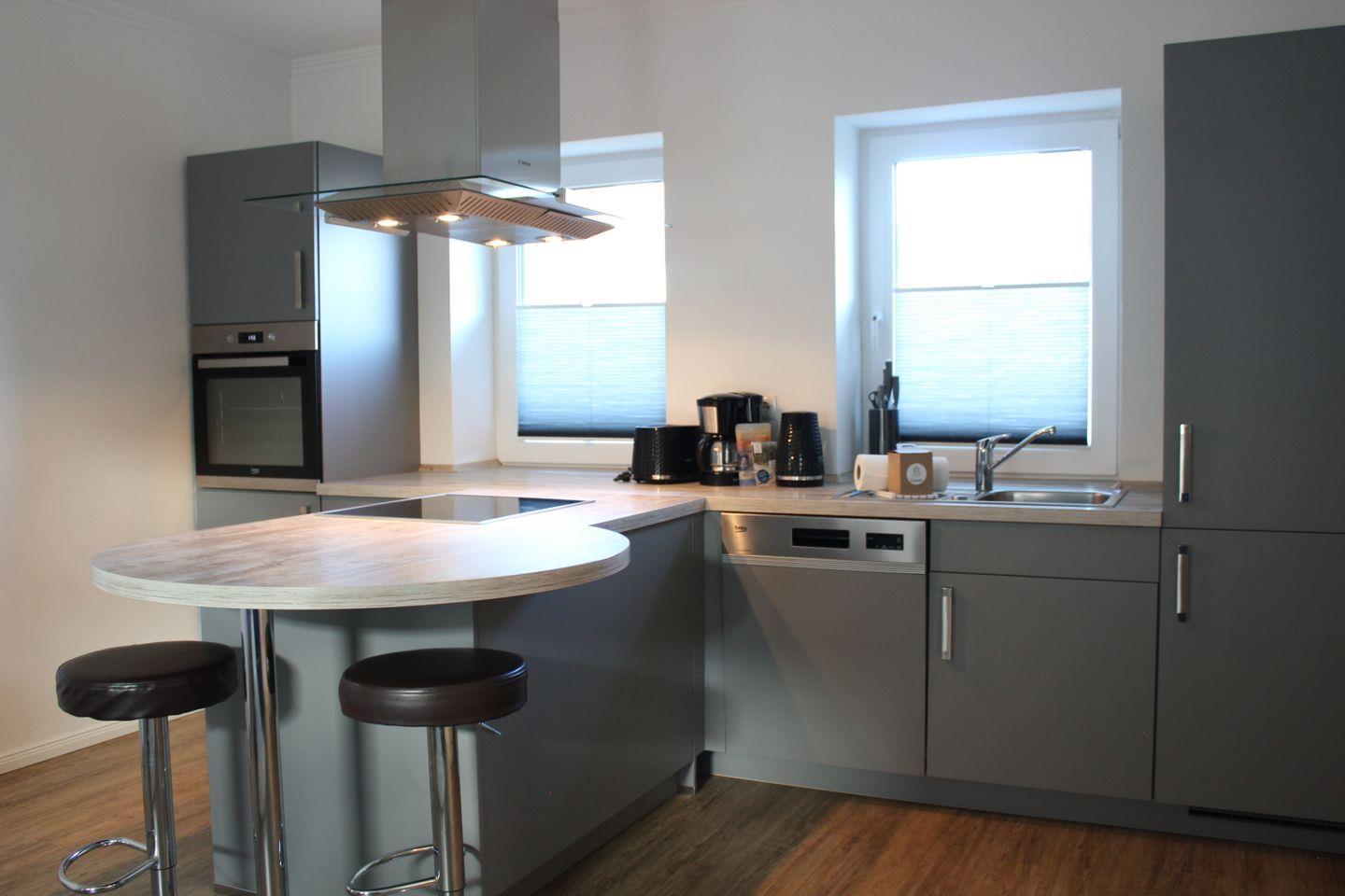 Moderne 2-Zimmer-Ferienwohnung nahe Hafen und Zentrum, hundefreundlich, mit stilvollem Ambiente und voll ausgestatteter Küche.