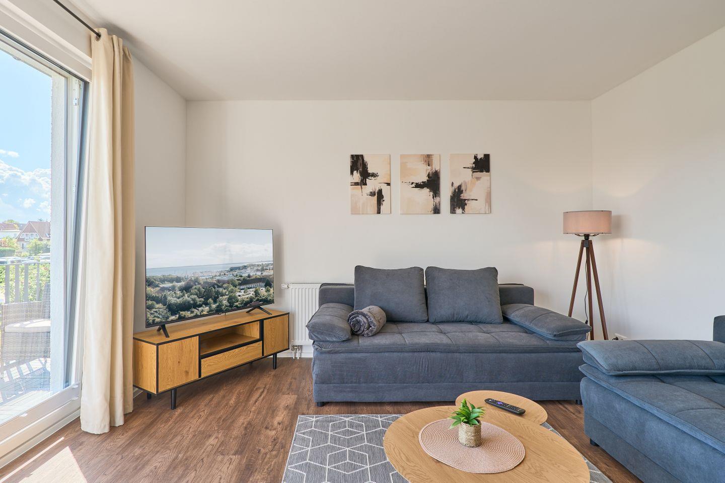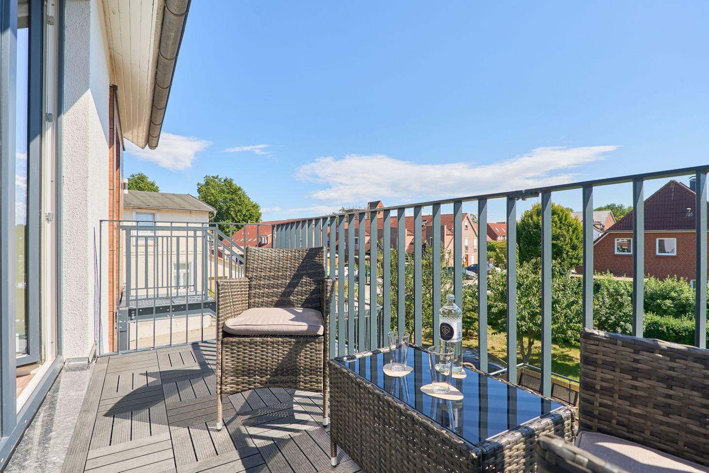 Moderne 3-Zimmer-Wohnung mit Balkon, nahe Hafen in Neustadt, ideal für Familien mit bis zu 6 Personen.