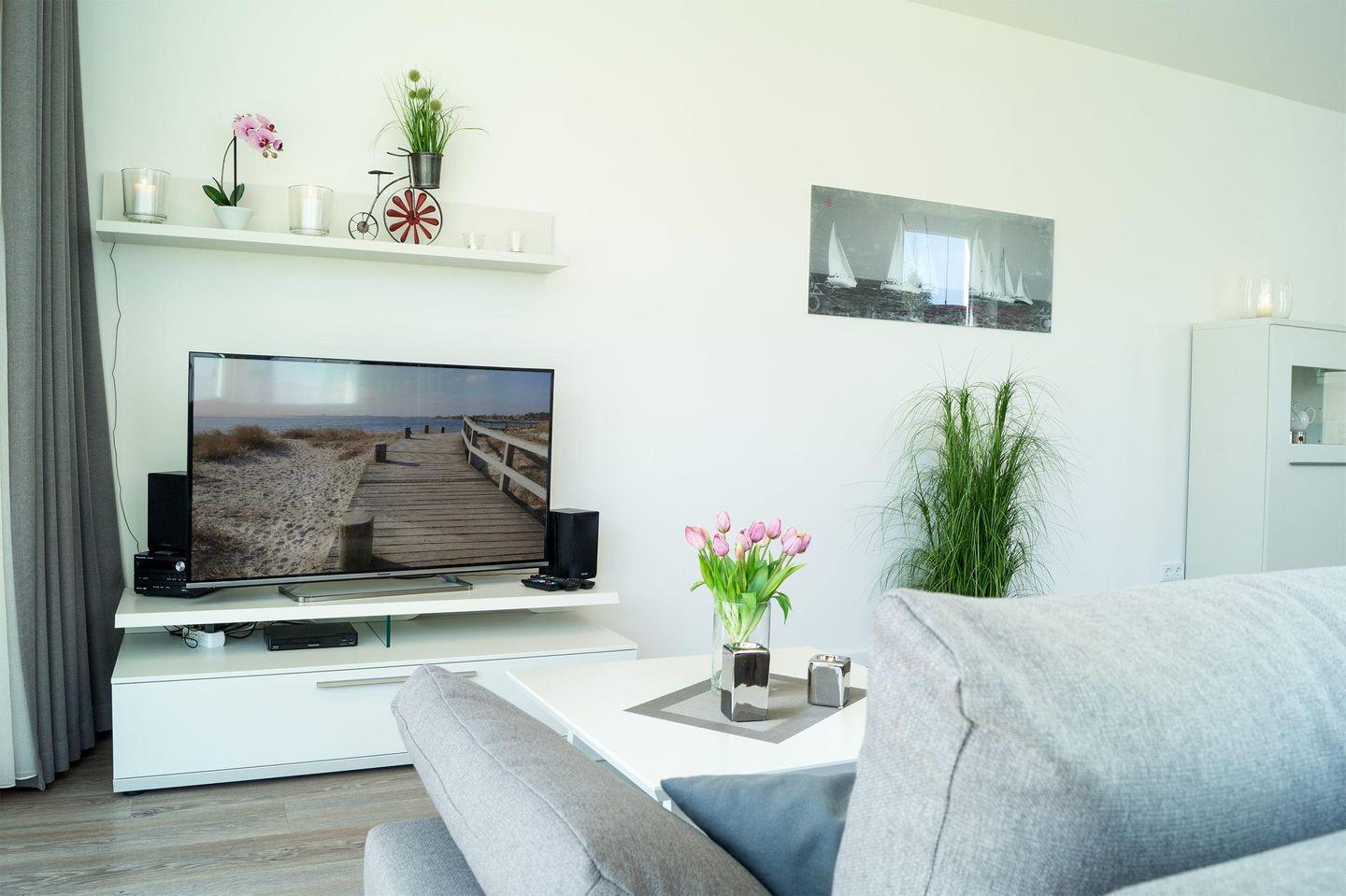 Helle Ferienwohnung für 4 Personen und Hund in wunderbarer Strandlage mit zwei SZ, möblierter Terrasse & eingeschränktem Meerblick