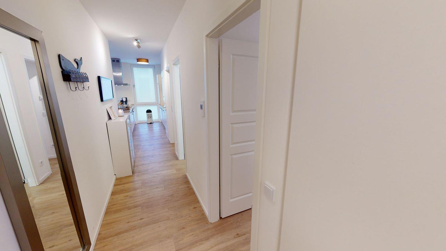 Moderne, helle Ferienwohnung für 4 Personen mit Terrasse & 2 Schlafzimmern direkt an der Ostsee -Meerblick & Tiefgaragenstellplatz.