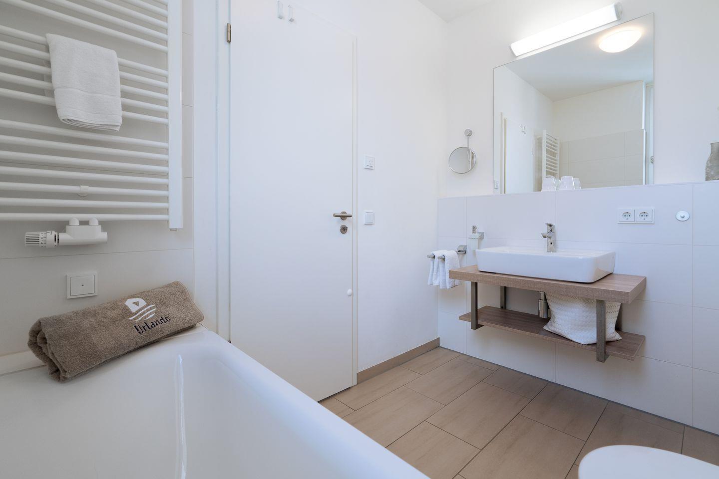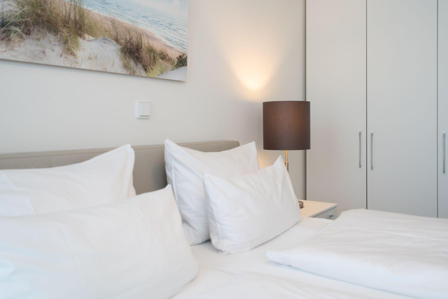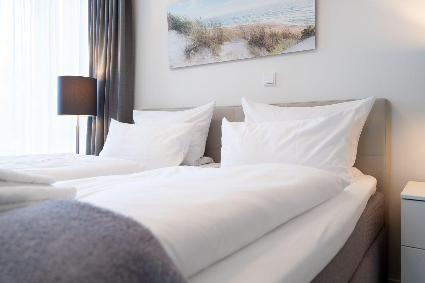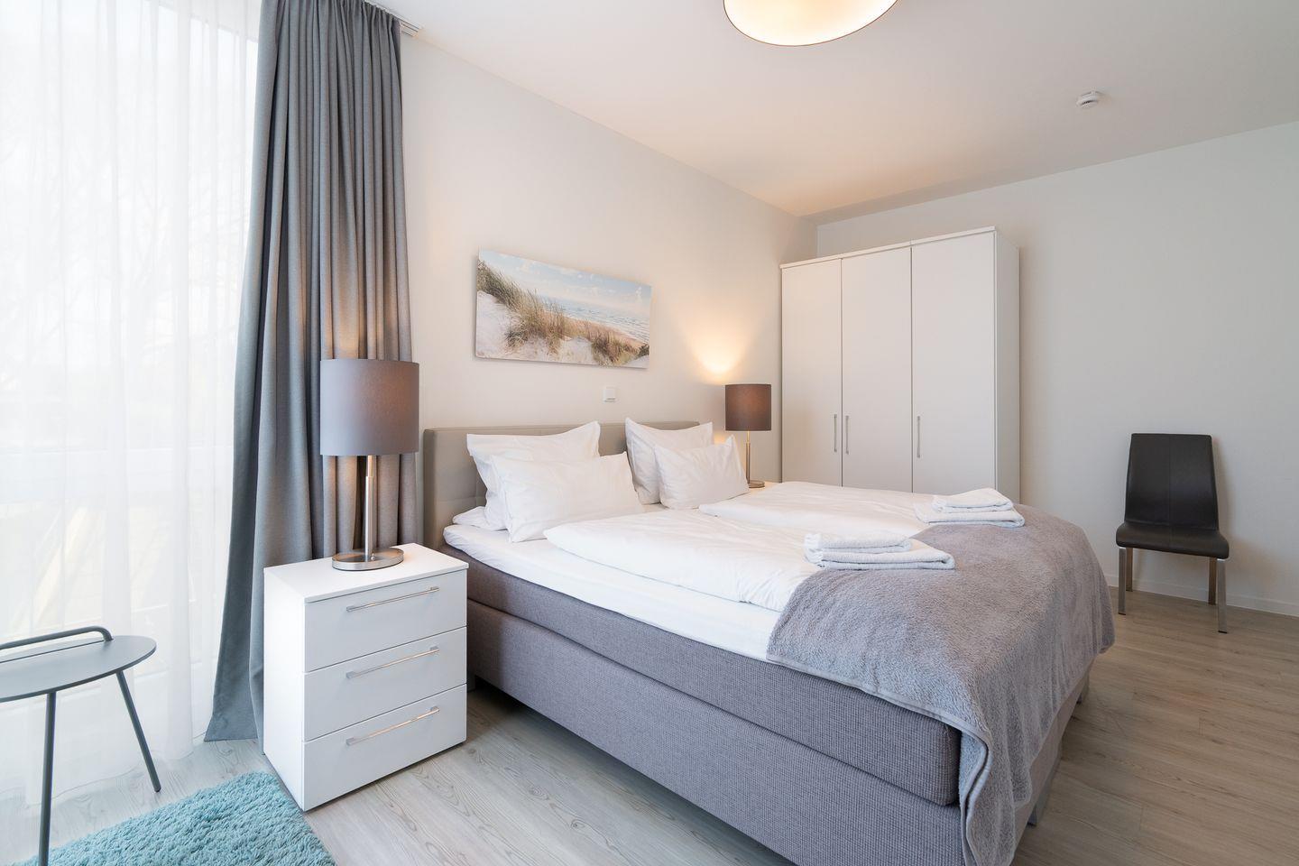 Diese herrliche Wohnung im ersten Obergeschoss ist 83 qm groß und hat drei Zimmer - zwei Schlafzimmer, jeweils mit Boxspring-Doppelbett, ein Wohnzimmer mit Küchenzeile und Schlafsofa. Sie ist für eine Belegung mit bis zu fünf Personen gut geeignet. Auch Hunde sind in dieser Wohnung herzlich willkommen (gegen Aufpreis)!