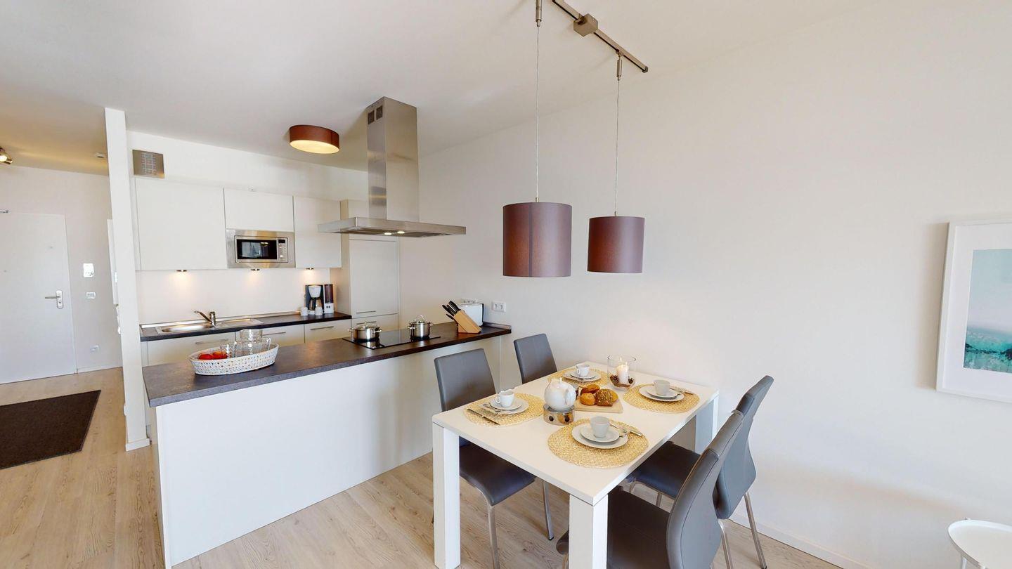 Modernes 2-Zimmer-Apartment mit Meerblick und Strand nur wenige Schritte entfernt.