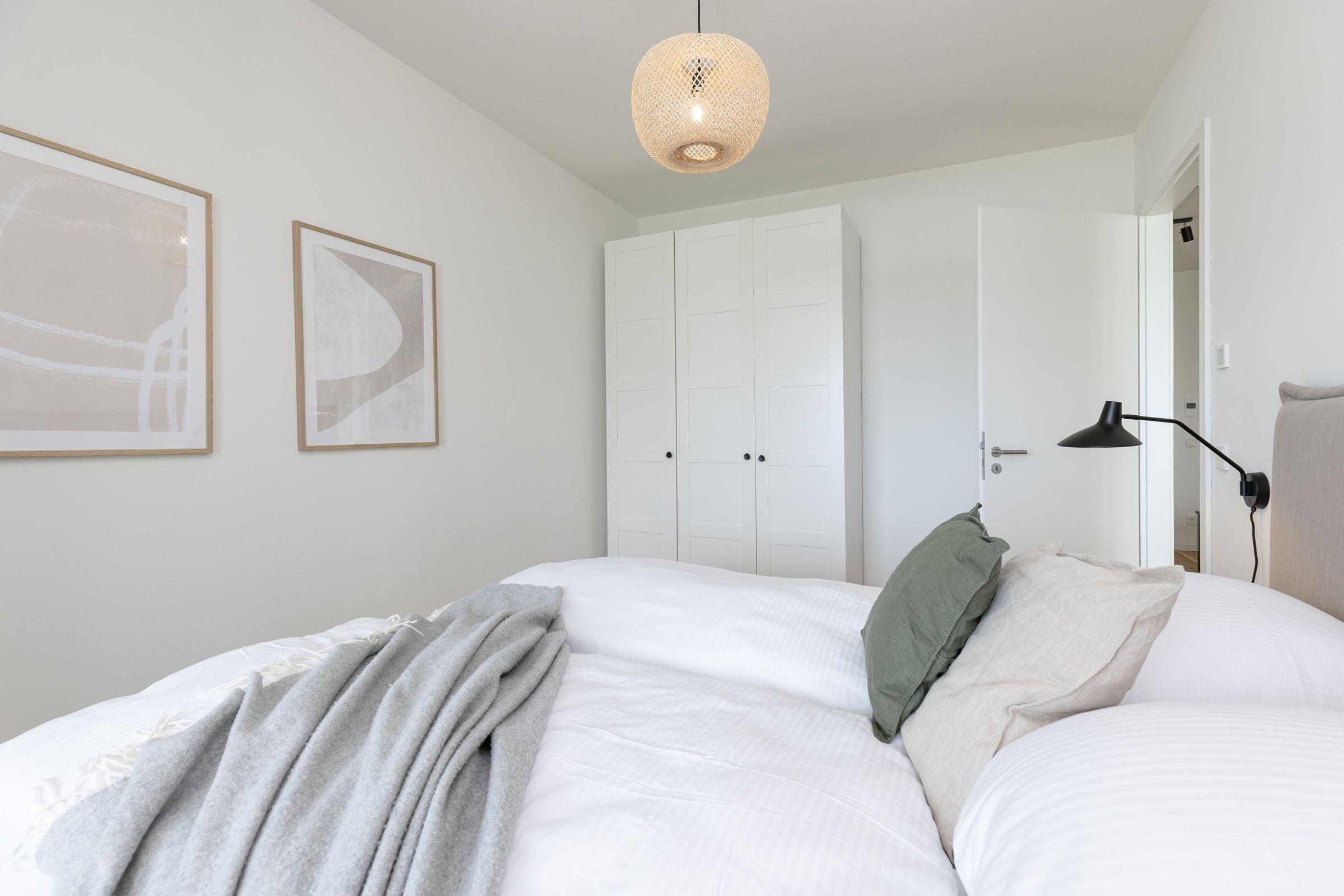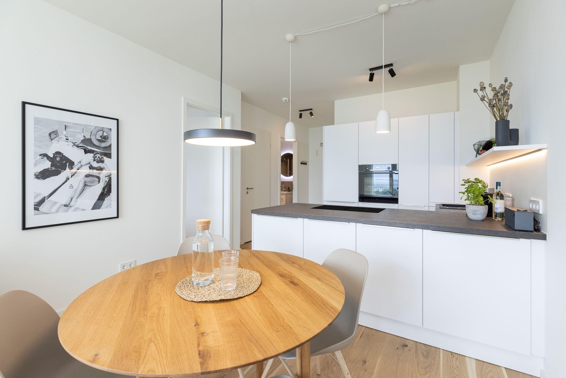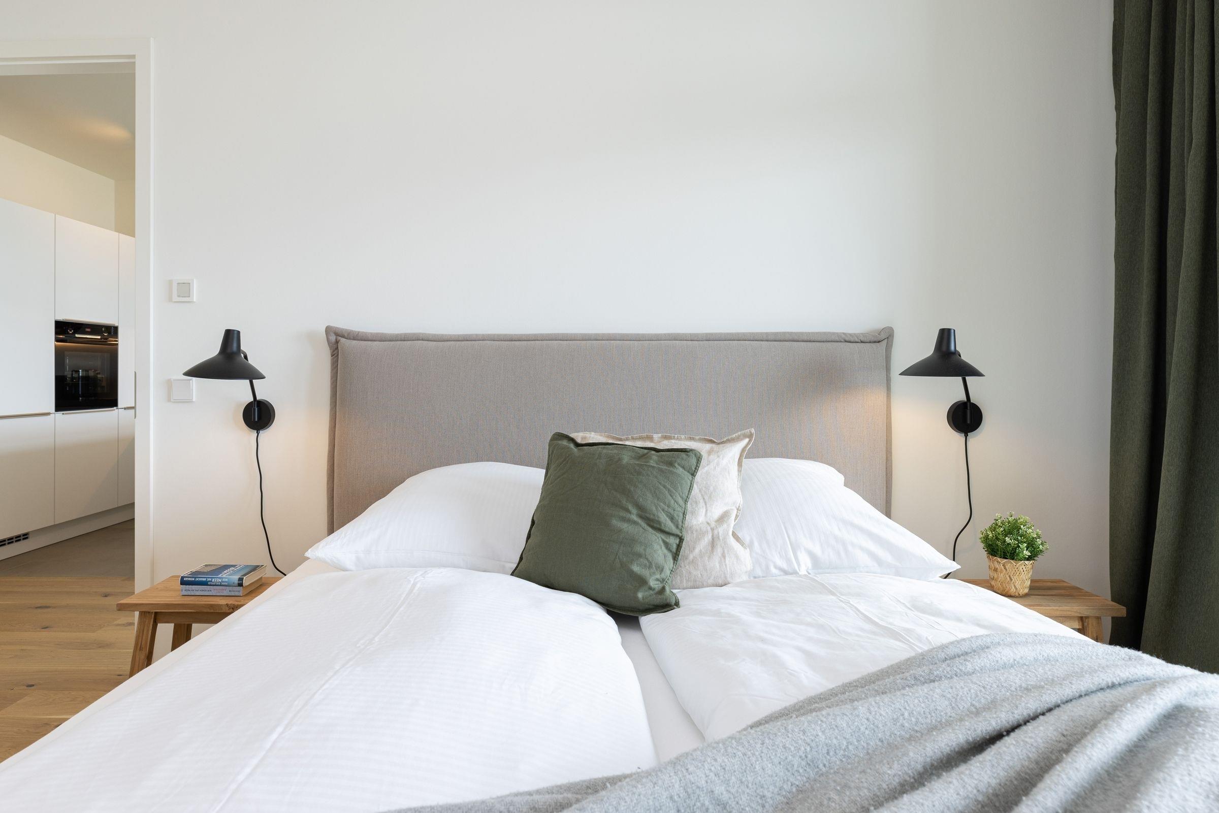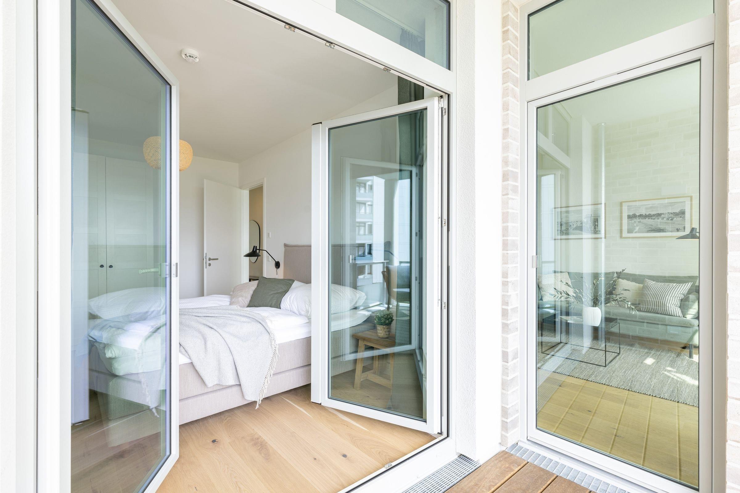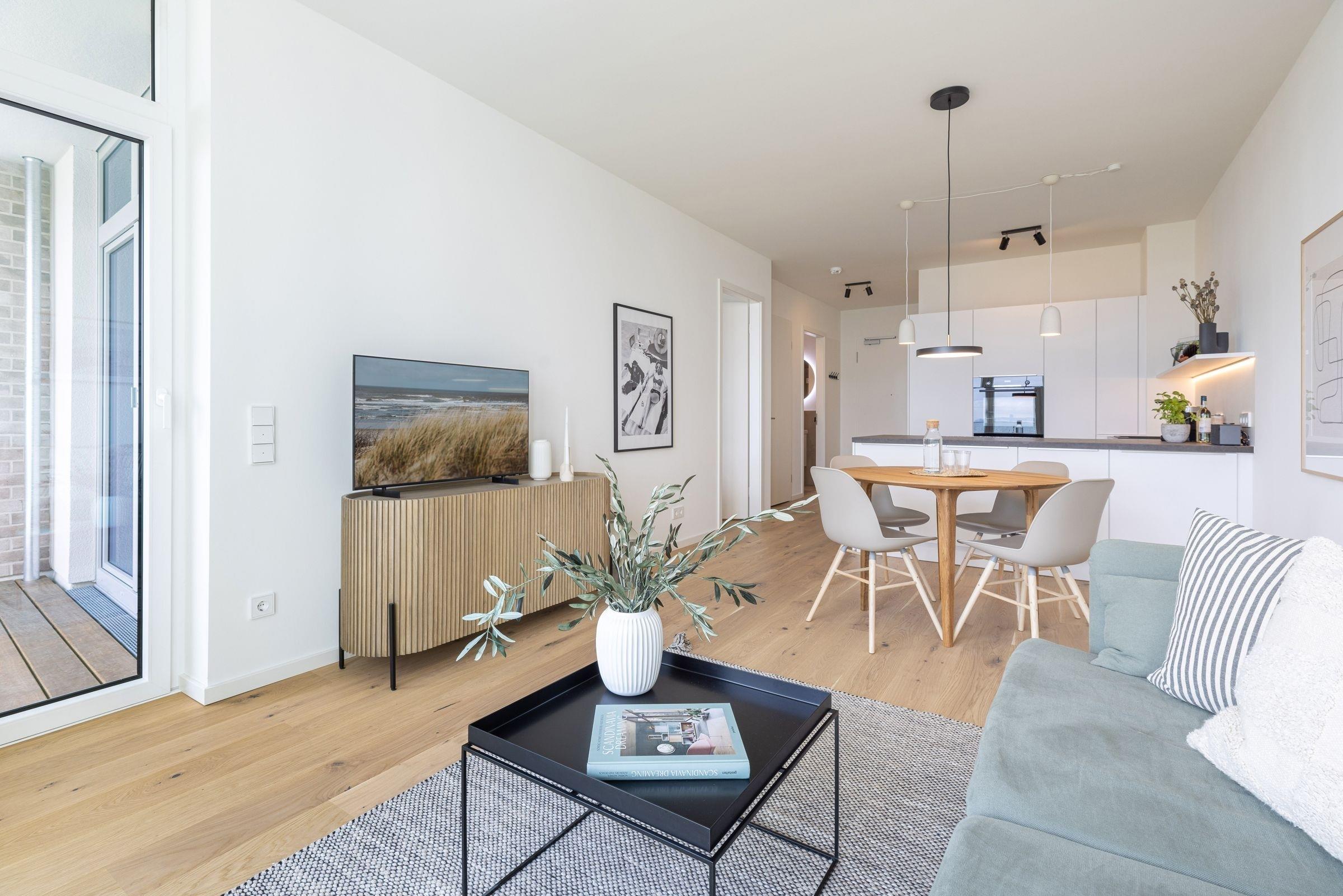 Der kombinierte Wohn- und Essbereich ist hochwertig ausgestattet und lädt Sie ein, erholsame Abende auf dem Sofa bei einem guten Film zu verbringen. In der offenen, voll ausgestatteten Küche können Sie abends Ihr Urlaubsmenü zaubern. Alle notwendigen Küchengeräte wie z. B. ein Backofen in komfortabler Arbeitshöhe, ein Herd (Induktion), ein Kühlschrank mit Gefrierfach sowie ein Geschirrspüler sind vorhanden. Als Highlight steht Ihnen neben einer Kaffeefiltermaschine zusätzlich eine Kaffeekapselmaschine (Nespresso) zur Verfügung. Das separate Schlafzimmer erwartet Sie bereits mit einem komfortablen Boxspring-Doppelbett (180x200 cm, durchgehender Topper). Auf den überdachten Süd-Balkon gelangen Sie sowohl vom Wohn- als auch vom Schlafzimmer. Genießen Sie Ihre Auszeit mit Meerblick und lassen sich dabei die Ostseeluft um die Nase wehen.