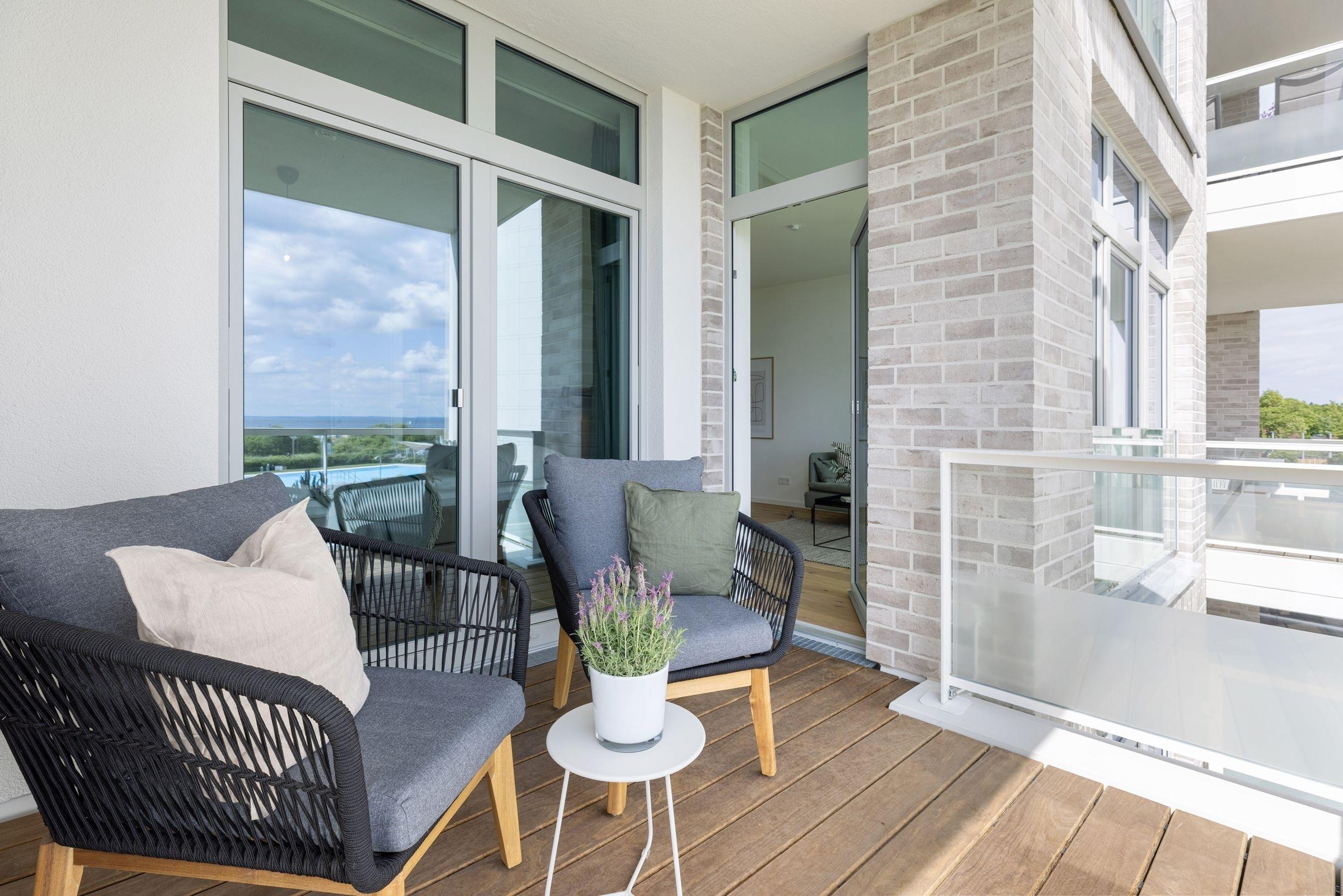 Moderne Ferienwohnung mit Balkon und Meerblick in Neustadt-Pelzerhaken.