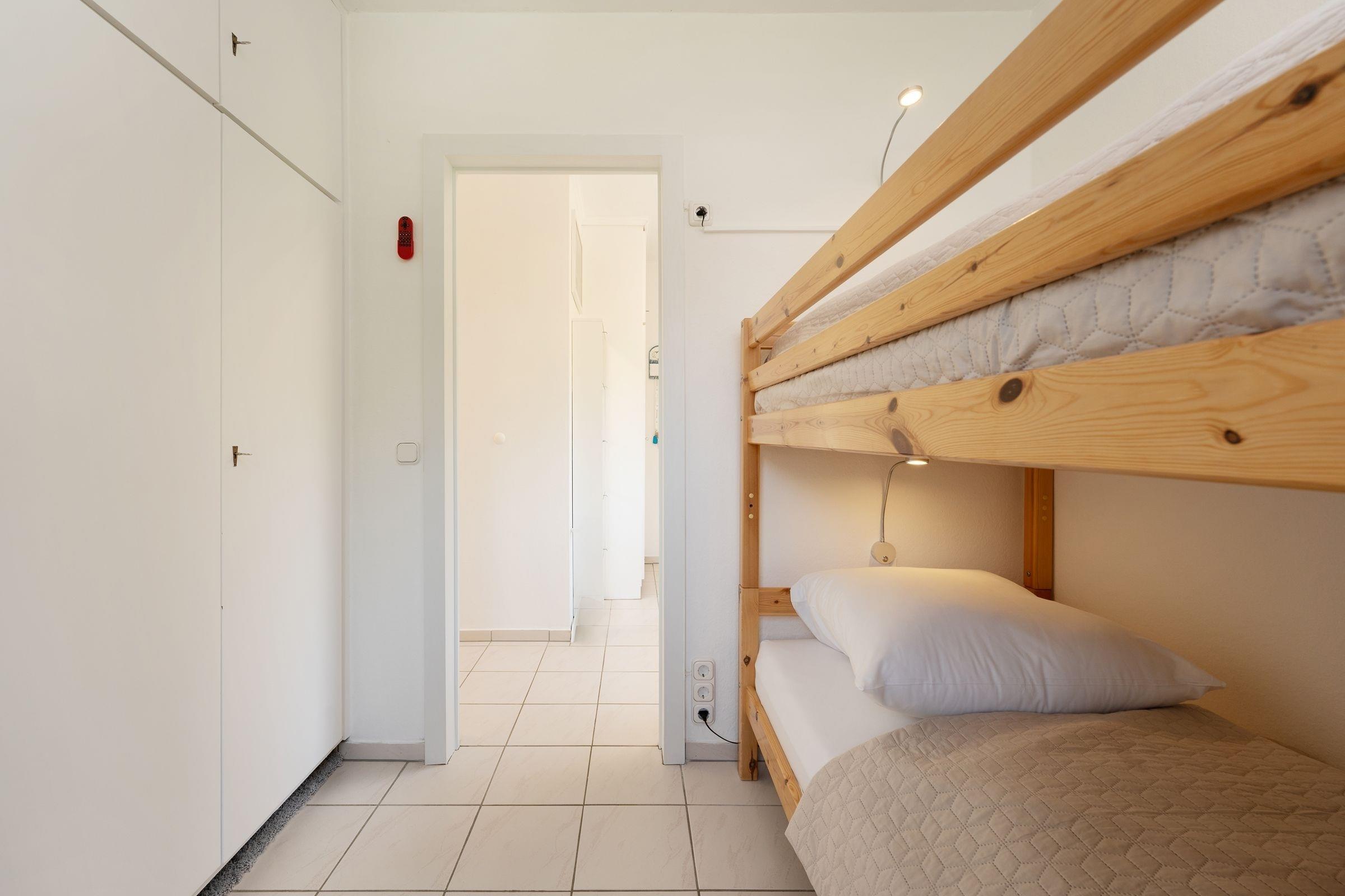 Schlafzimmer 2: 1 Etagenbett (je 90x200 cm, nur für Kinder geeignet), Verdunkelung: Rollladen, Platz für Babybett vorhanden