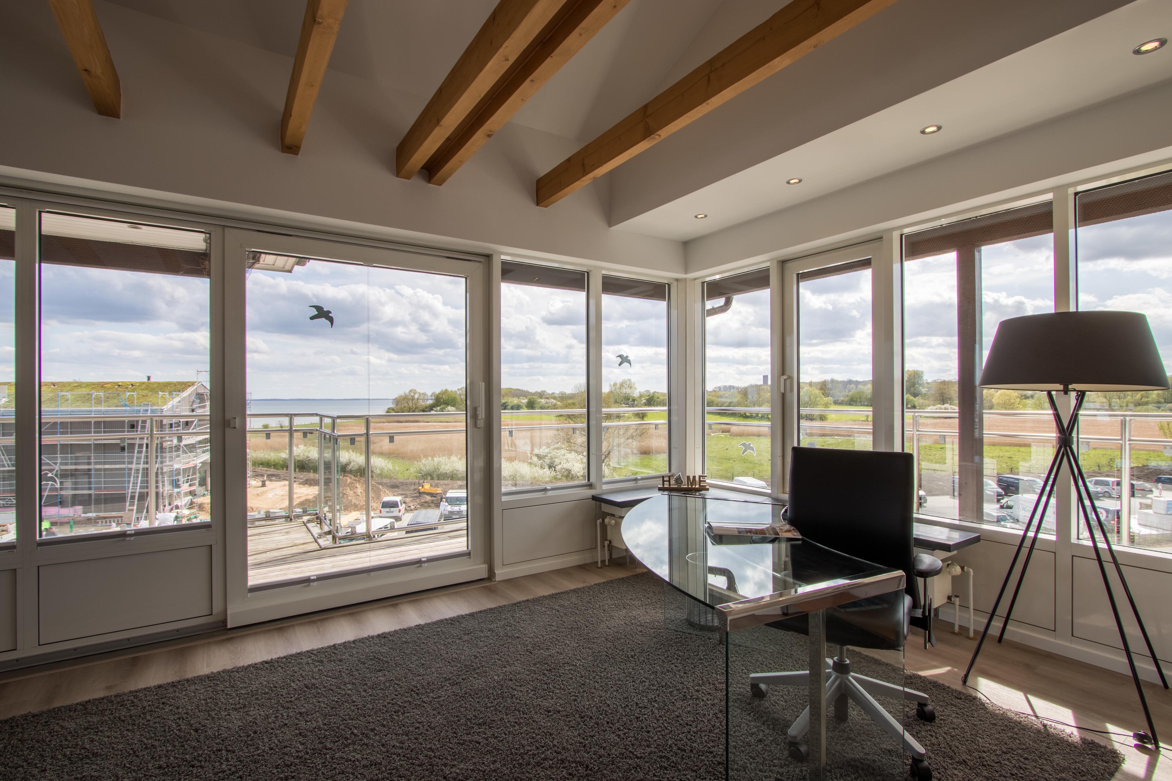 Balkon mit Blick über Ostsee, Hafen und Naturschutzgebiet