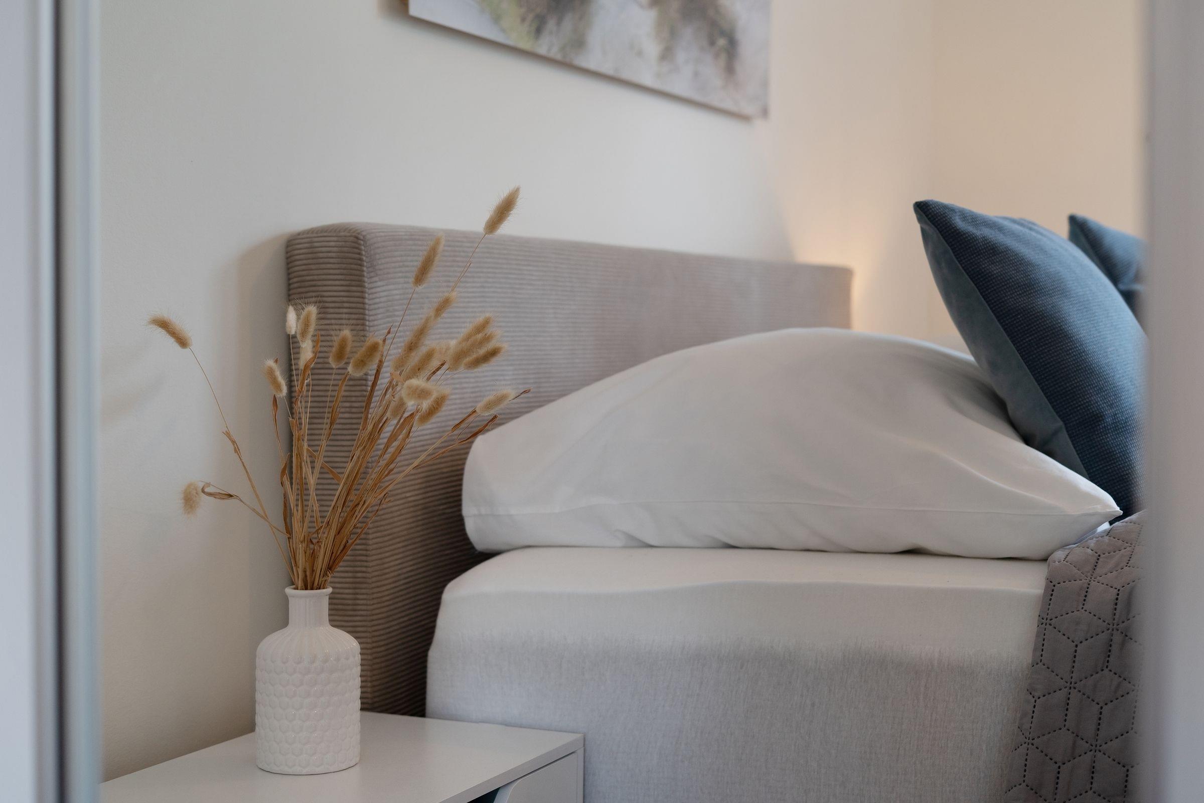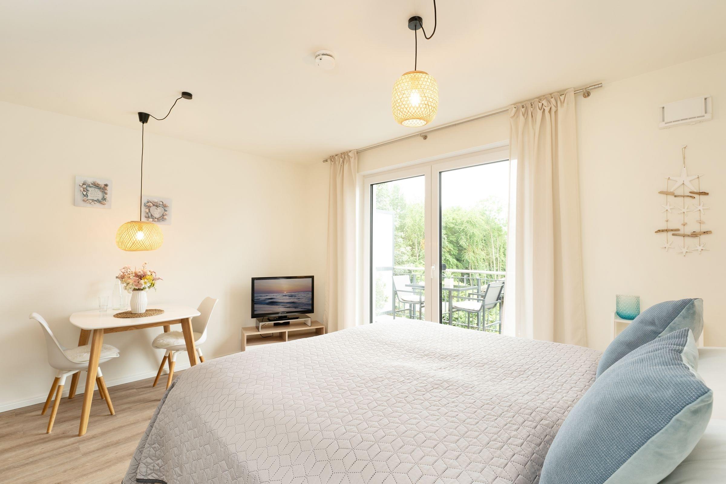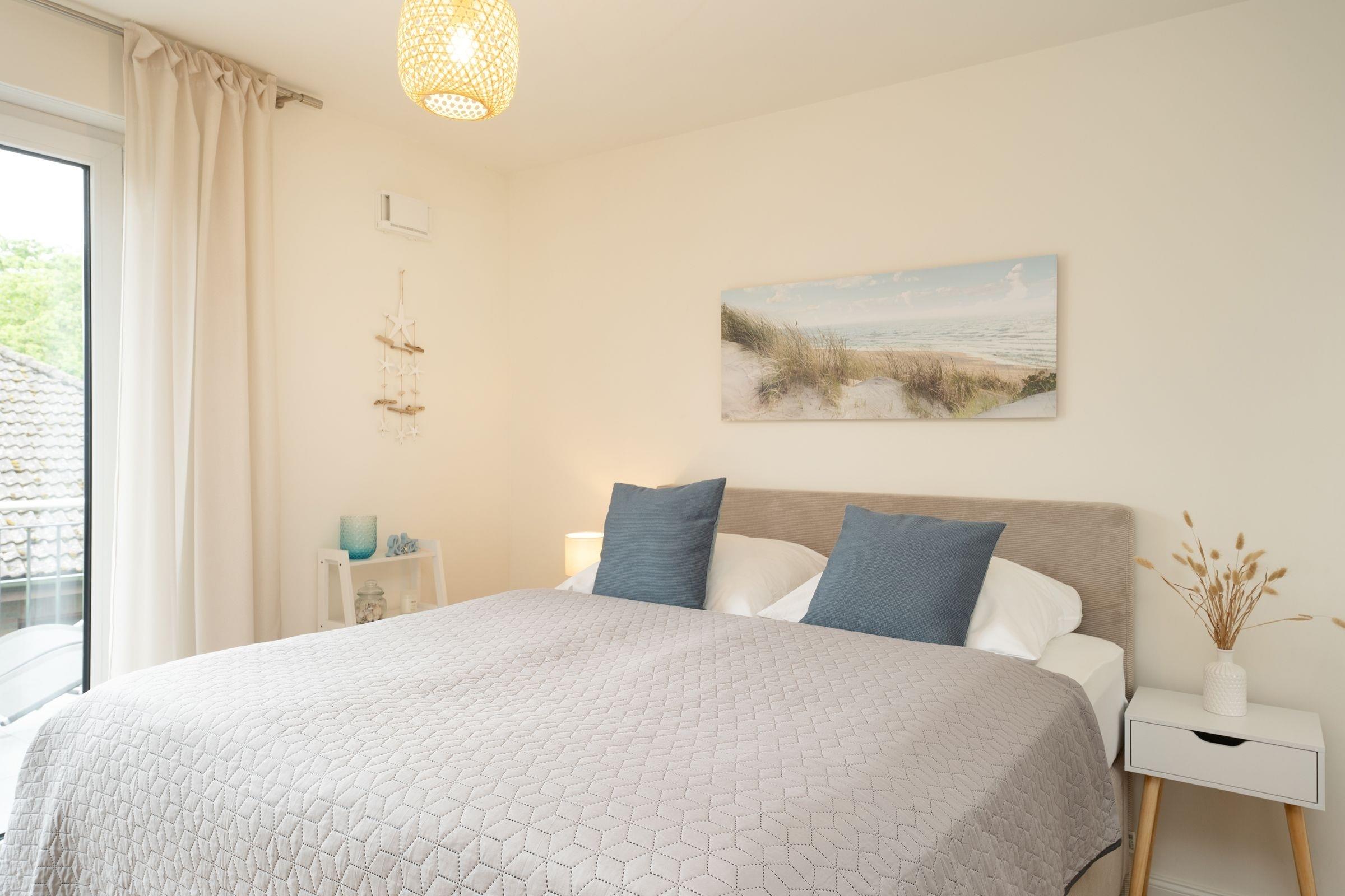 Moderne 1-Zimmer-Ferienwohnung mit Balkon und hochwertigem Boxspringbett in Neustadt, nur 15 Minuten Fußweg zur Ostsee.