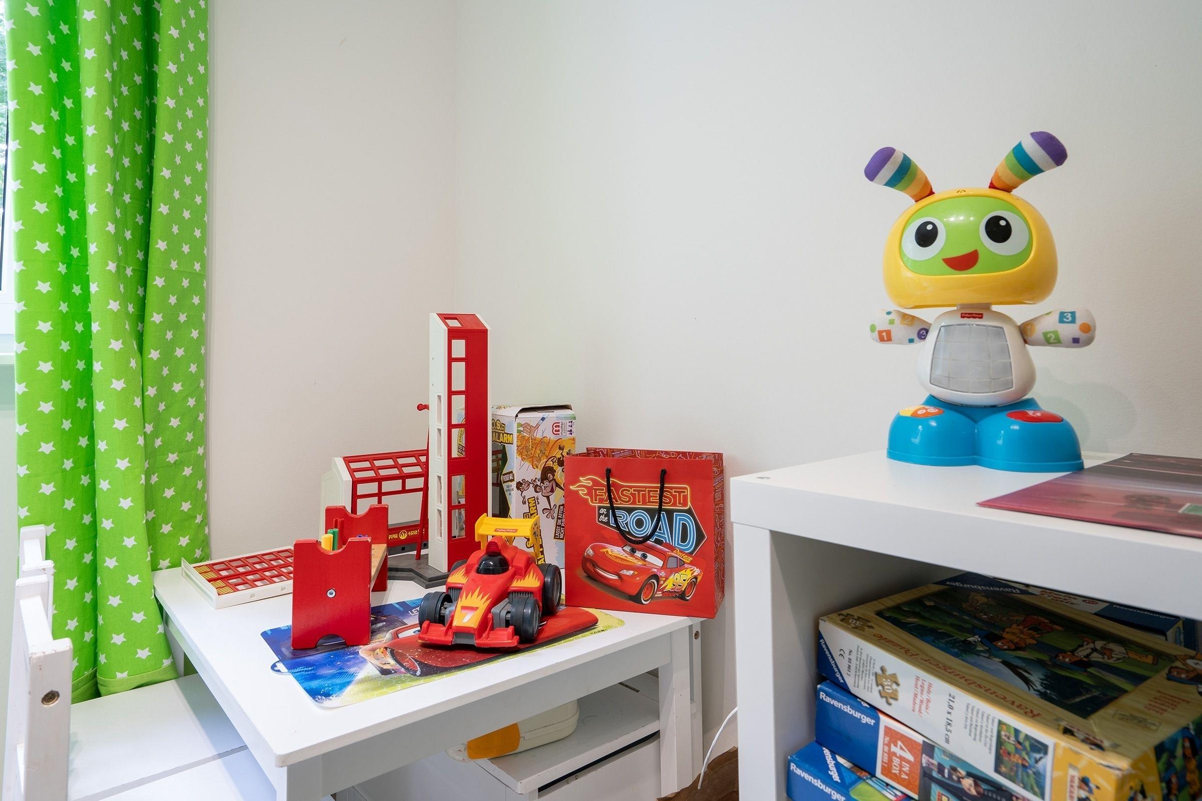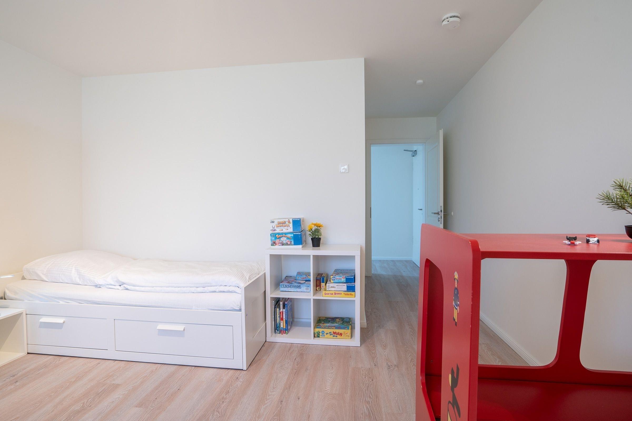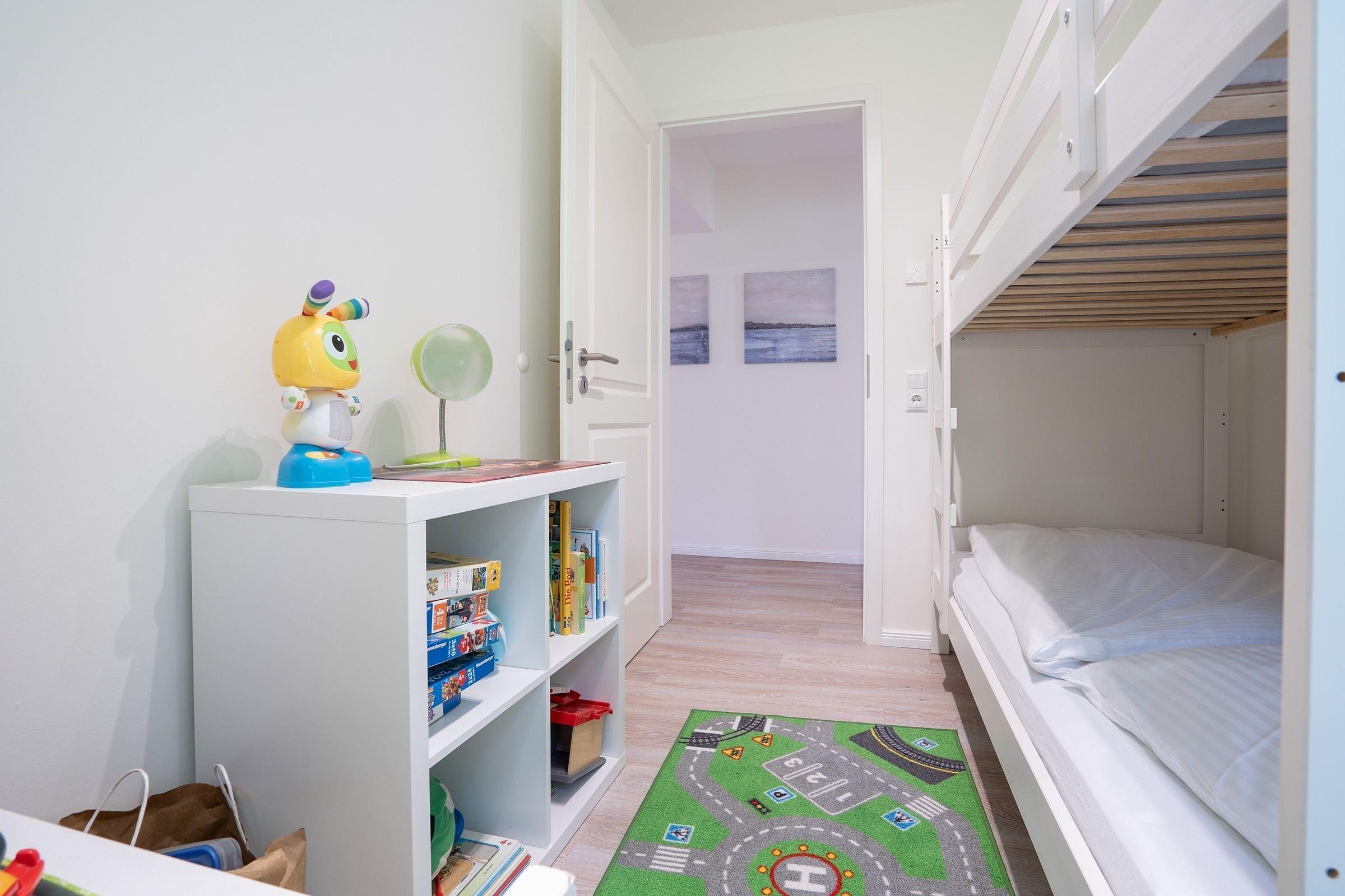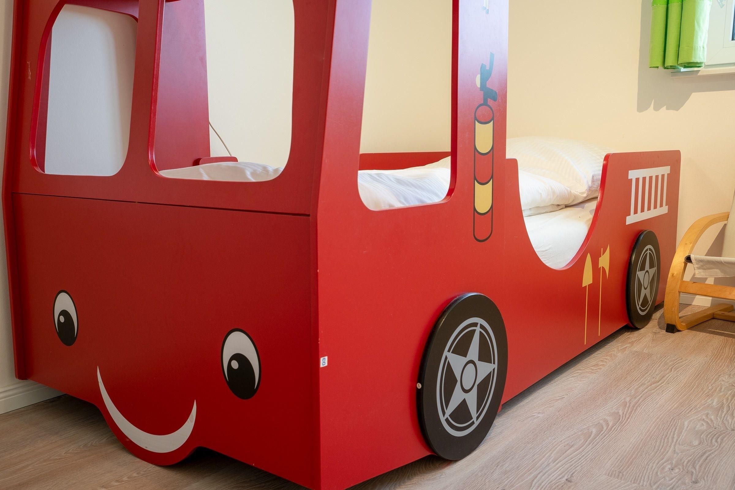 Schlafzimmer 3: 2 Einzelbetten (je 90x200 cm), 1 Feuerwehr-Einzelbett (90x200cm) Kleiderschrank, Verdunkelung (Rollo und Gardinen), Platz für Babybett