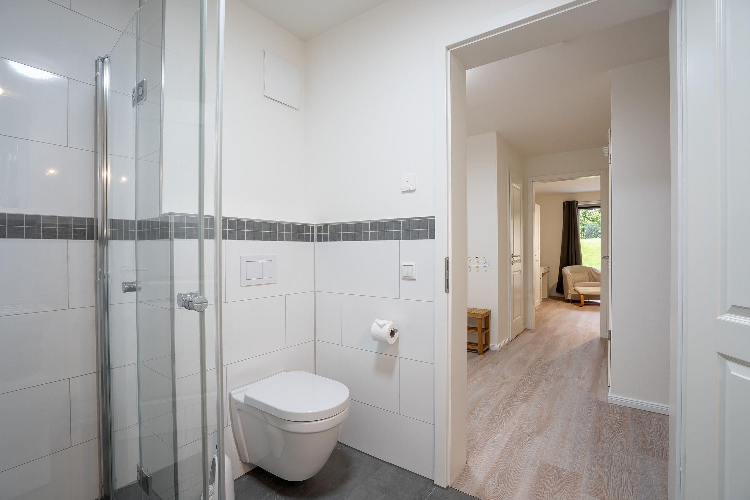 Das Herzstück der Familienkoje Marina ist der gemütliche, offene Wohnbereich - hier ist Platz zum Kochen, Essen, Spielen oder Kuscheln auf dem Sofa. In der modernen Küche macht das Kochen auch im Urlaub Spaß und Sie entscheiden selbst, ob Sie das Essen am großzügigen Esstisch oder auf der Terrasse mit Blick in den Garten genießen wollen. Zur Nacht kann sich jeder Urlaubsgast in sein eigenes Reich zurückziehen, denn hier laden gleich 4 Schlafzimmer zum Träumen und Relaxen ein. 2 Schlafzimmer sind mit je einem großen Doppelbett (2x 90x200 cm), Kleiderschrank und TV ausgestattet. Das dritte Schlafzimmer verfügt über ein Etagenbett (je 90x200 cm) und Kleiderschrank. Das vierte große Schlafzimmer begeistert mit einem Feuerwehr-Bett (90x200cm) , sowie 2 weiteren Einzelbetten (je 90x200 cm) und viel Platz zum Spielen besonders unsere kleinen Urlaubsgäste. 2 Badezimmer mit Dusche garantieren einen stressfreien morgendlichen Ablauf und alle starten entspannt in den Tag.