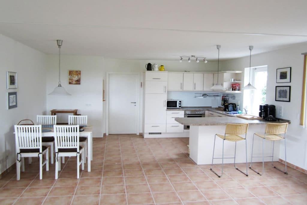 Das freistehende Ferienhaus, bietet höchsten Komfort und mit 165 qm viel Platz für 2-4 Personen. Als Niedrigenergiehaus wurde es nach ökologischen Gesichtspunkten/Erkenntnissen in 2012/2013 erbaut und nur biologisch unbedenkliche Materialien verwendet. Alle Räume sind hell, freundlich, modern eingerichtet. Das offene Wohnzimmer bietet eine gemütliche Leseecke mit Kaminofen, eine Sitzgruppe (Ledersofa), CD-Anlage und Sat-TV. Von der großen Terrasse im EG, mit komfortabler Sitzgruppe und Strandkorb, hat man einen wunderbaren Ausblick auf die Ostsee. Die offene Küche ist modern und komplett ausgestattet. Im OG befinden sich 2 Schlafräume (1 Doppelbett / 2 Einzelbetten) mit Balkon. Badezimmer mit Dusche, Sauna und Whirlwanne, PKW-Parkplätze auf dem Grundstück, E-Bike-Ladestation steht zur Verfügung.