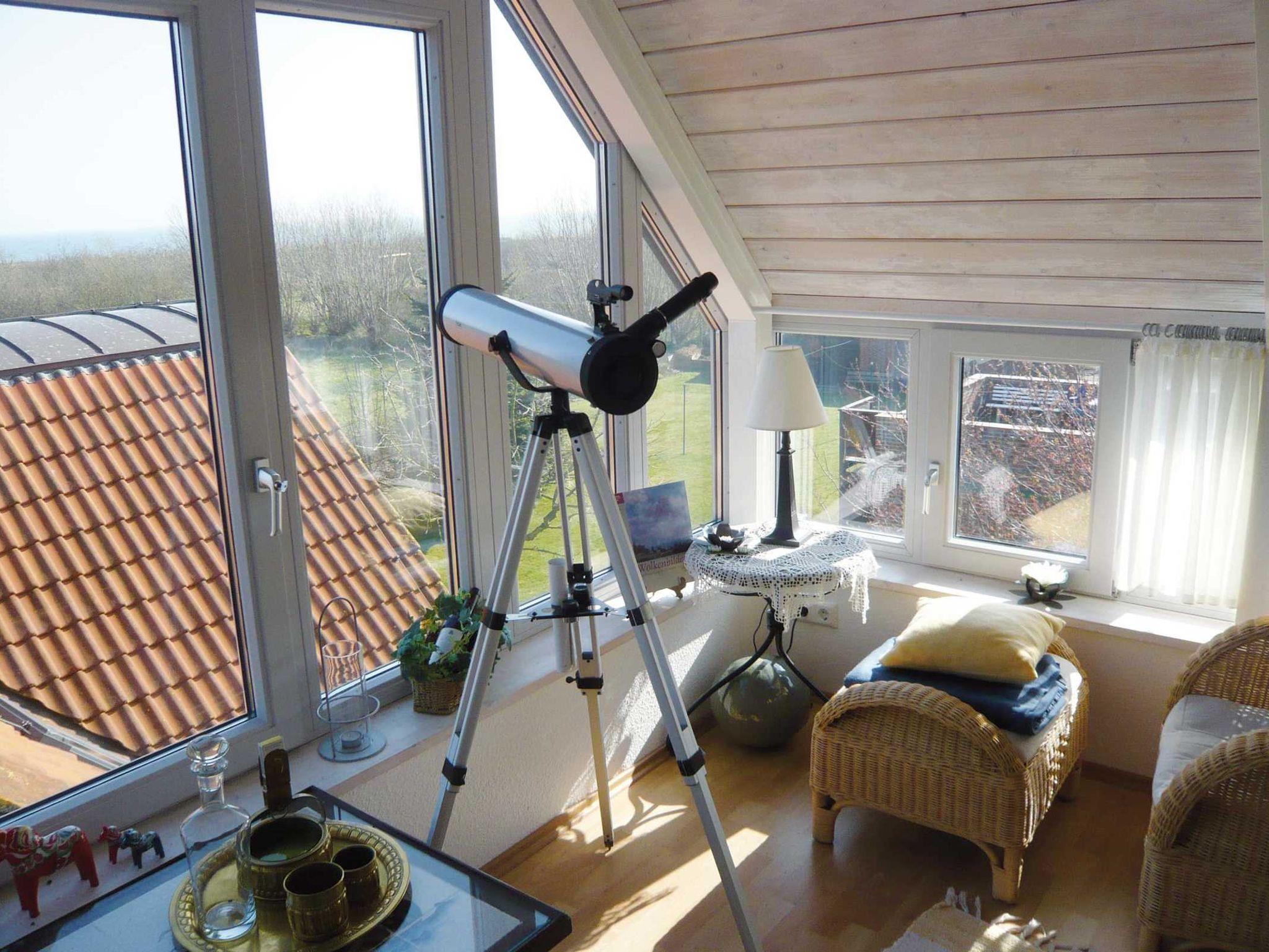 Im Erdgeschoss befindet sich die gemütliche Kaminofenstube mit Essplatz, die sep. liebevoll eingerichtete Pantry-Küche sowie WC und Dusche. Mitteletage: gemütliches Wohn-und Fernsehzimmer, inkl. Rattanausziehcouch. Von dort gelangt man in das separat gelegene Schlafzimmer (Doppelbett plus ein Einzelbett). Unter dem Dach von Merlins Turmhuus befindet sich das Turmzimmer. Dort erwartet Sie eine gemütliche Teestube. Von hieraus können Sie wunderbar die Natur beobachten und den ungestörten Ausblick auf das Meer und die nahe dänische Küstenlandschaft genießen.