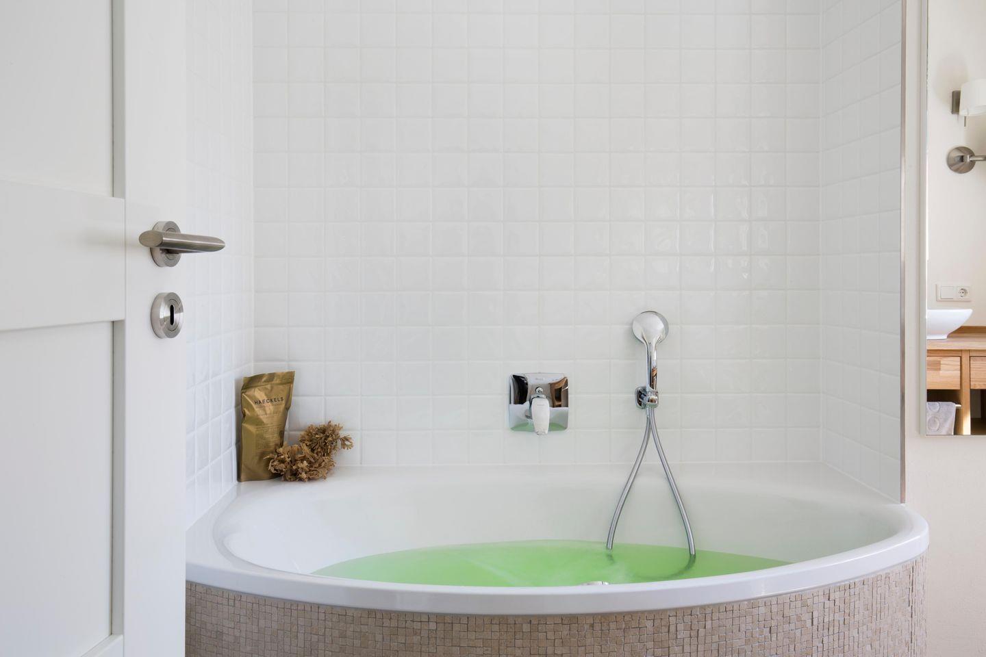 Kamin, Sauna und großzügige Terrasse mit hölzerner Sitzecke und eigenem Standkorb sind nur einige der Wohlfühl-Oasen in diesem Malerhaus.