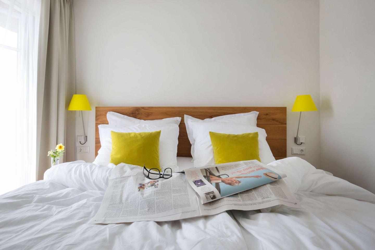 Alle Zimmer sind bis ins letzte Detail liebevoll eingerichtet mit einer Ausstattung auf höchstem Niveau: Vom Besteck über die Elektrogeräte bis zur Biobaumwolldecke finden Sie ausschließlich hochwertige Markenprodukte, ergänzt durch eigens entwickelte und gefertigte Echtholz-Möbel und Textilien.