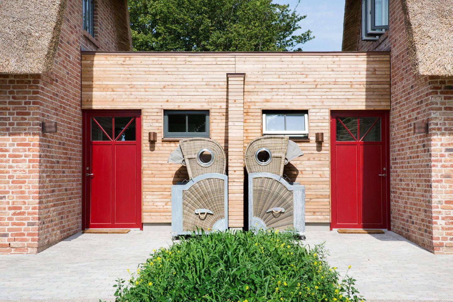 Alle Häuser haben eine besondere Atmosphäre und ein ökologisches Wohnklima durch die Verwendung natürlicher Baustoffe wie Reet, Holz und Ziegel.