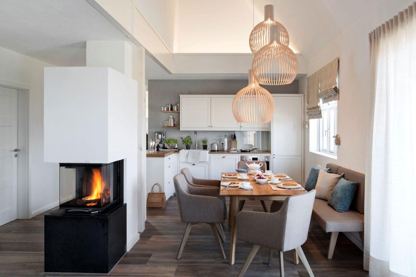 Auf 110 Quadratmetern Wohnfläche genießen Sie die Annehmlichkeiten der exklusiven Einrichtung. Kamin, Sauna und großzügige Terrasse mit hölzerner Sitzecke und eigenem Standkorb sind nur einige Aspekte der Wohlfühl-Oasen in dieser wunderbaren Künstlerkate Windstille.