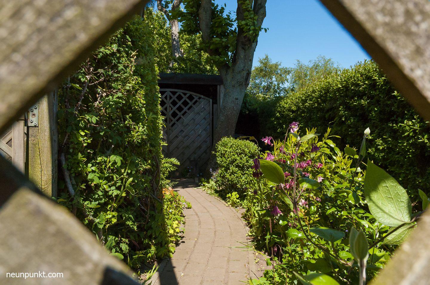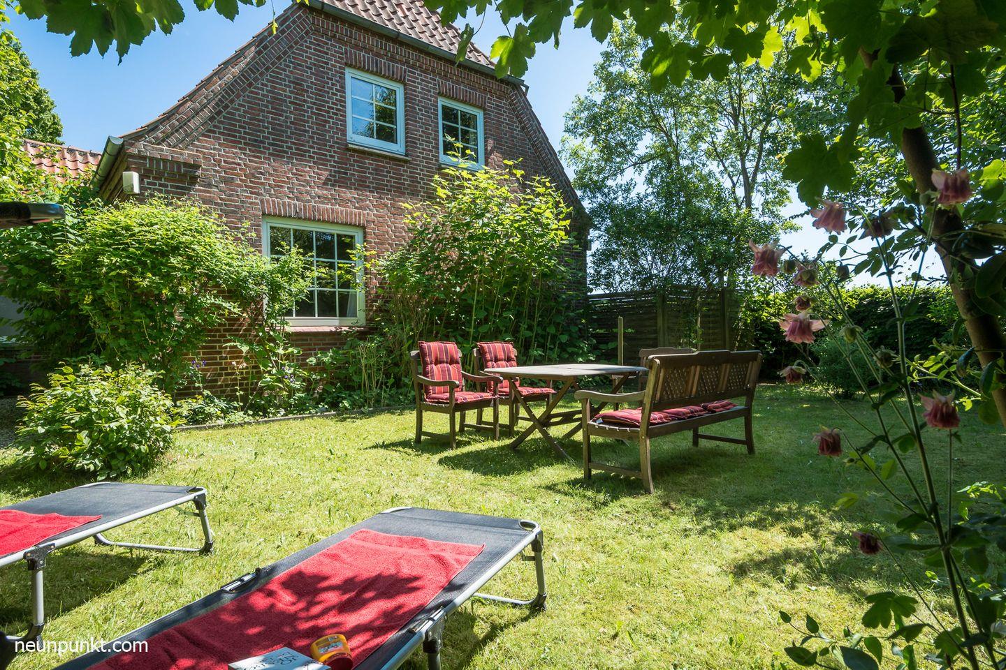 Zum Ferienhaus gehört außerdem ein Garten und eine Terrasse.