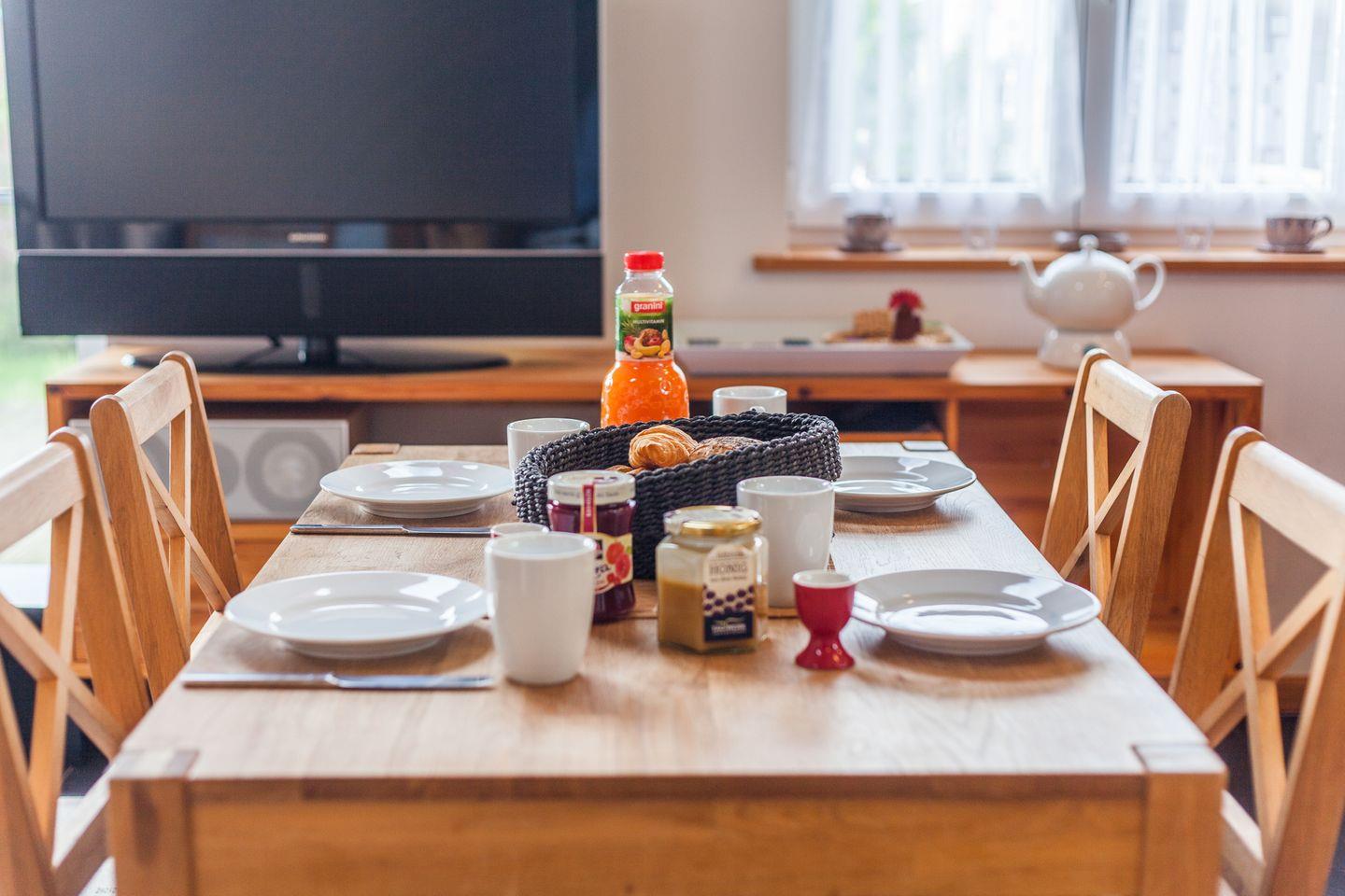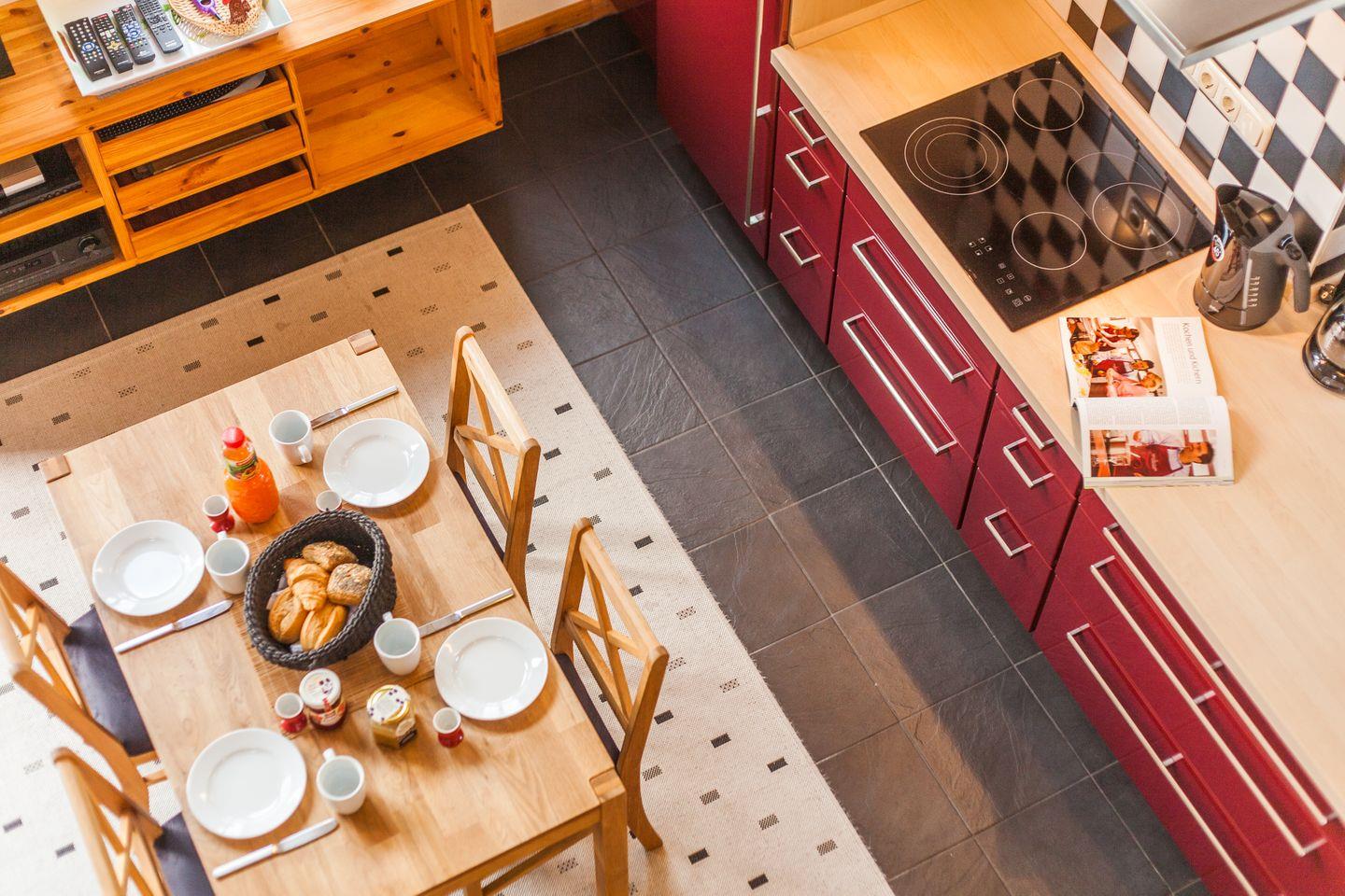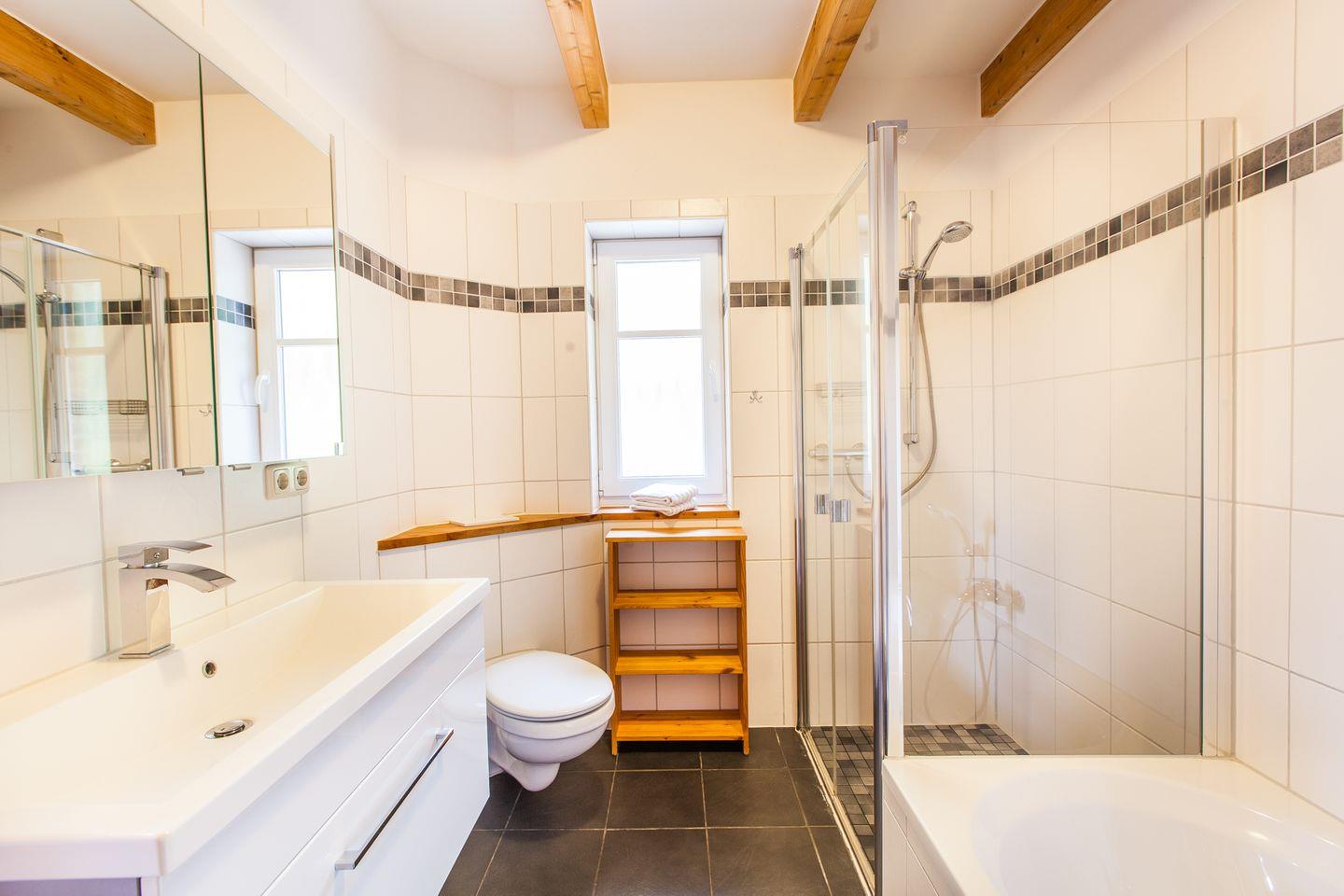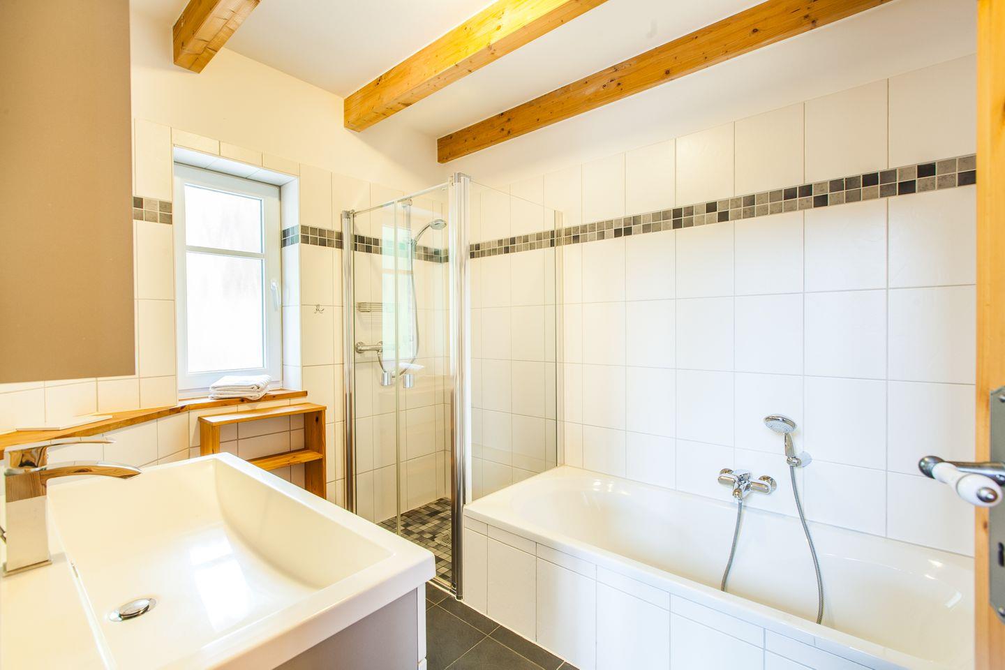 Im Haus finden Sie einen bis ins Dach offenen Wohnraum mit angrenzender Küche, ein Schlafzimmer mit Schlafcouch (140x200 cm), sowie ein helles, freundliches Badezimmer mit Dusche, Wanne und Handtuchtrockner.