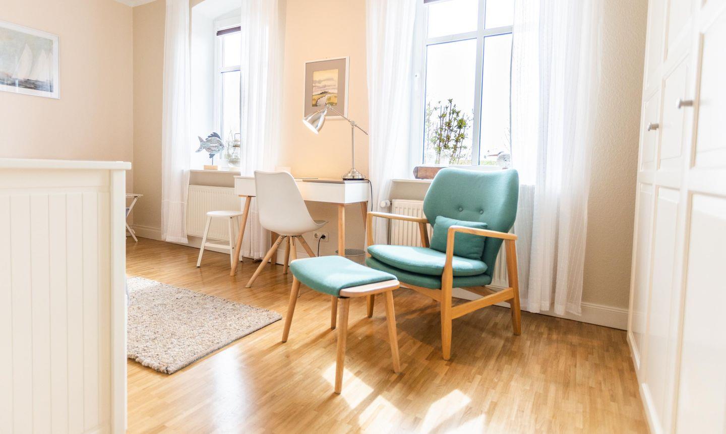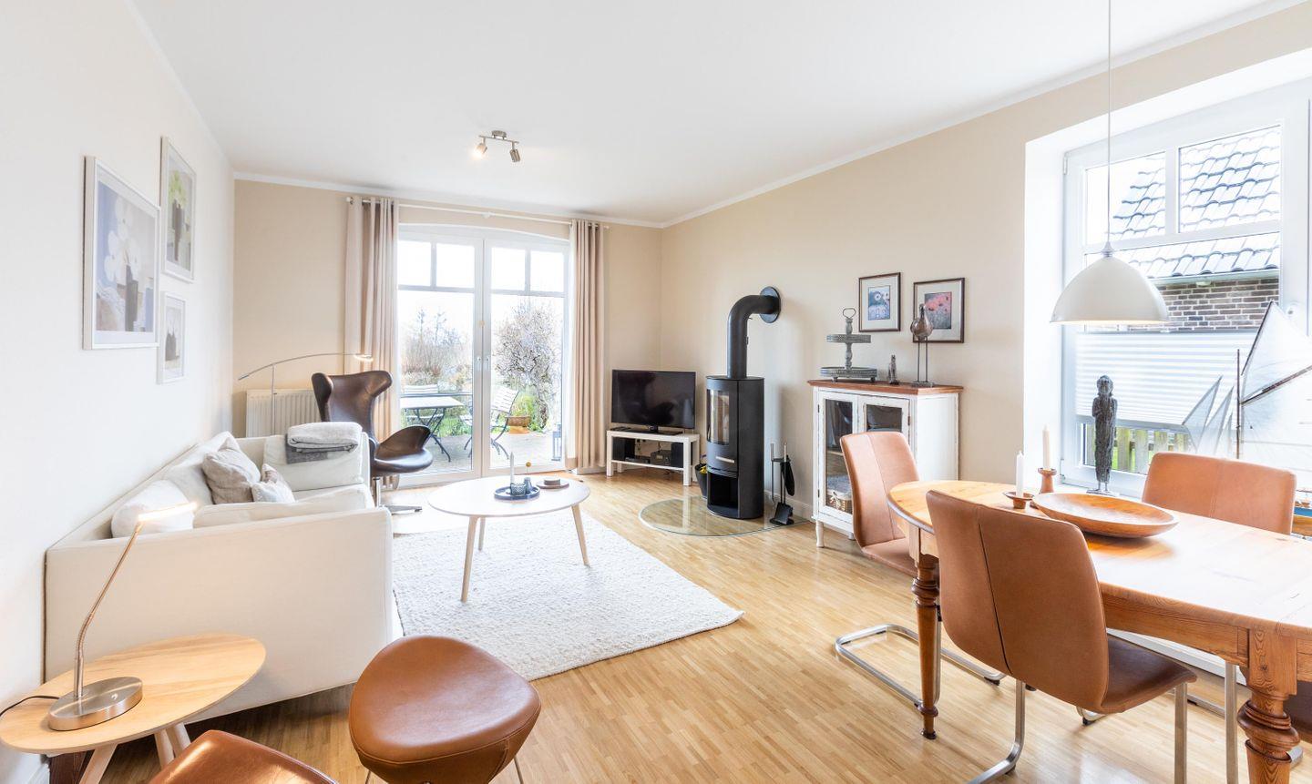 Stilvolle Ferienwohnung mit Kamin, Garten und Meerblick in ruhiger Lage nahe Naturschutzgebiet und Strand.