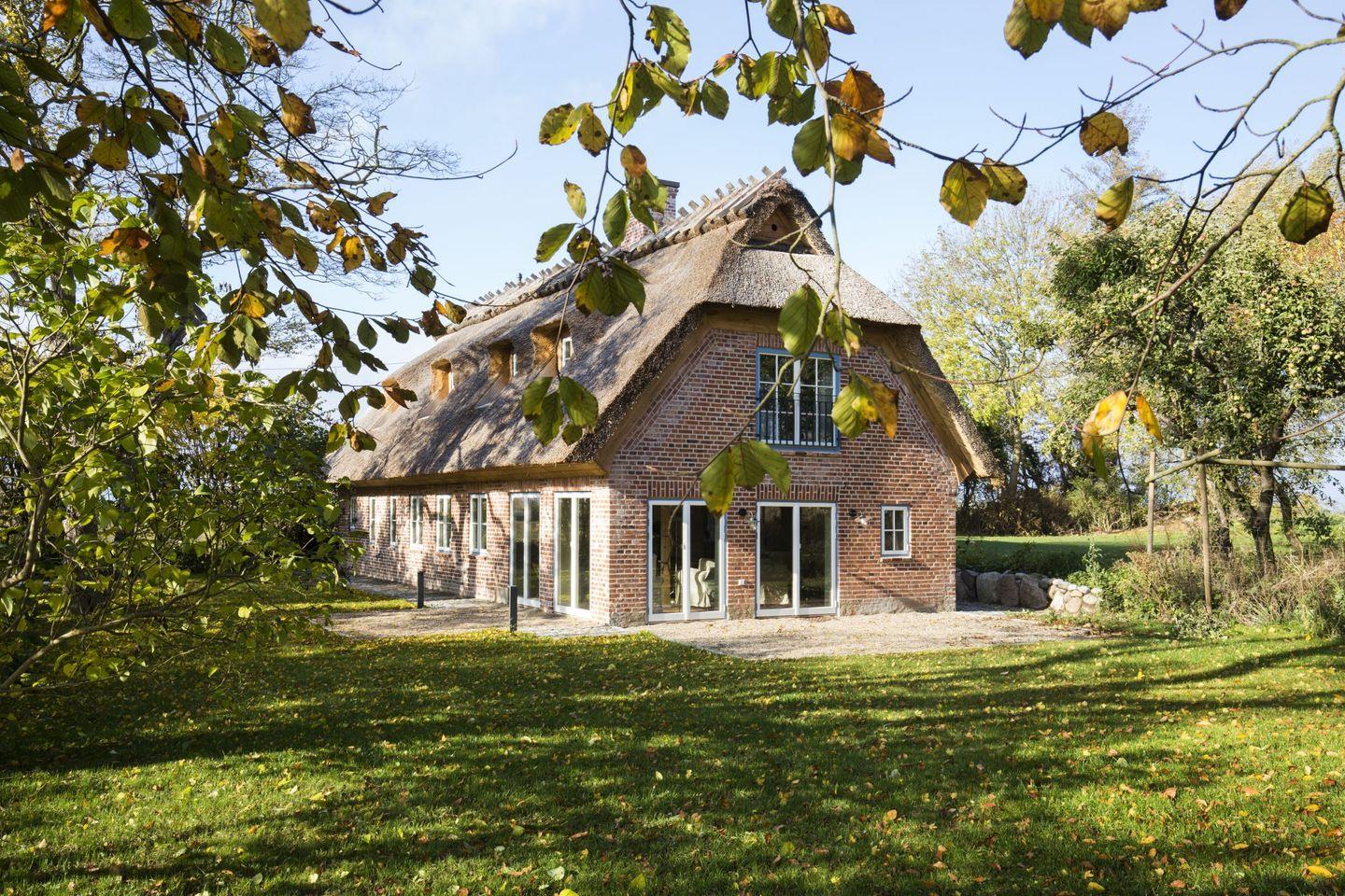 Entzückende Reetdachkate am Feldrand mit Kamin