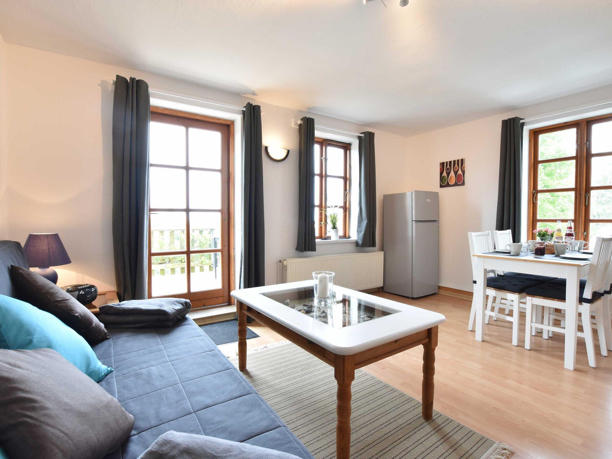 1 Wohnzimmer mit Doppelschlafcouch, Küchenzeile und Geschirrspüler