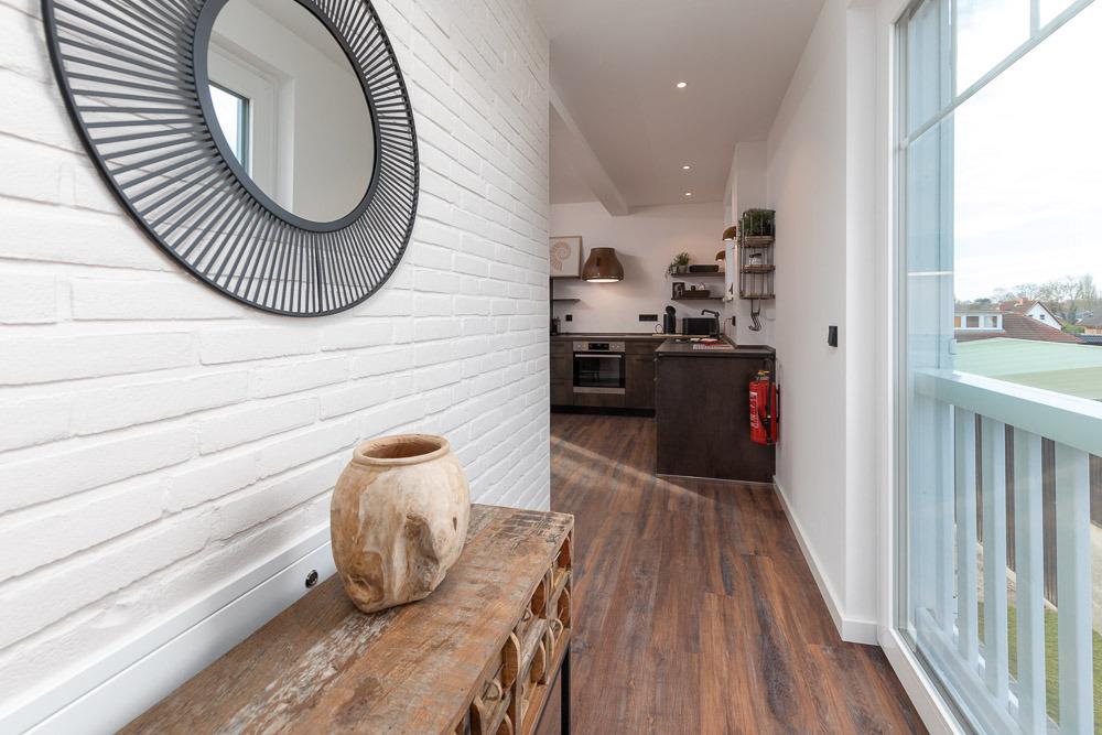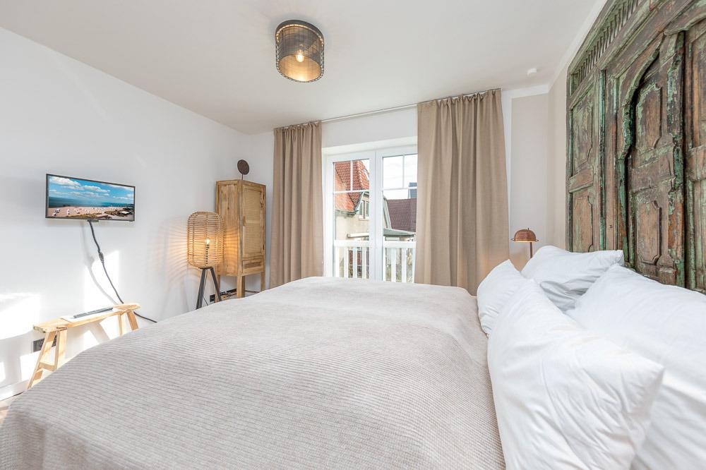 Exklusives Ferienappartement „Fliegender Holländer“ in Niendorf mit modernem Komfort und großem Balkon, nur 950 m vom Fischereihafen entfernt.