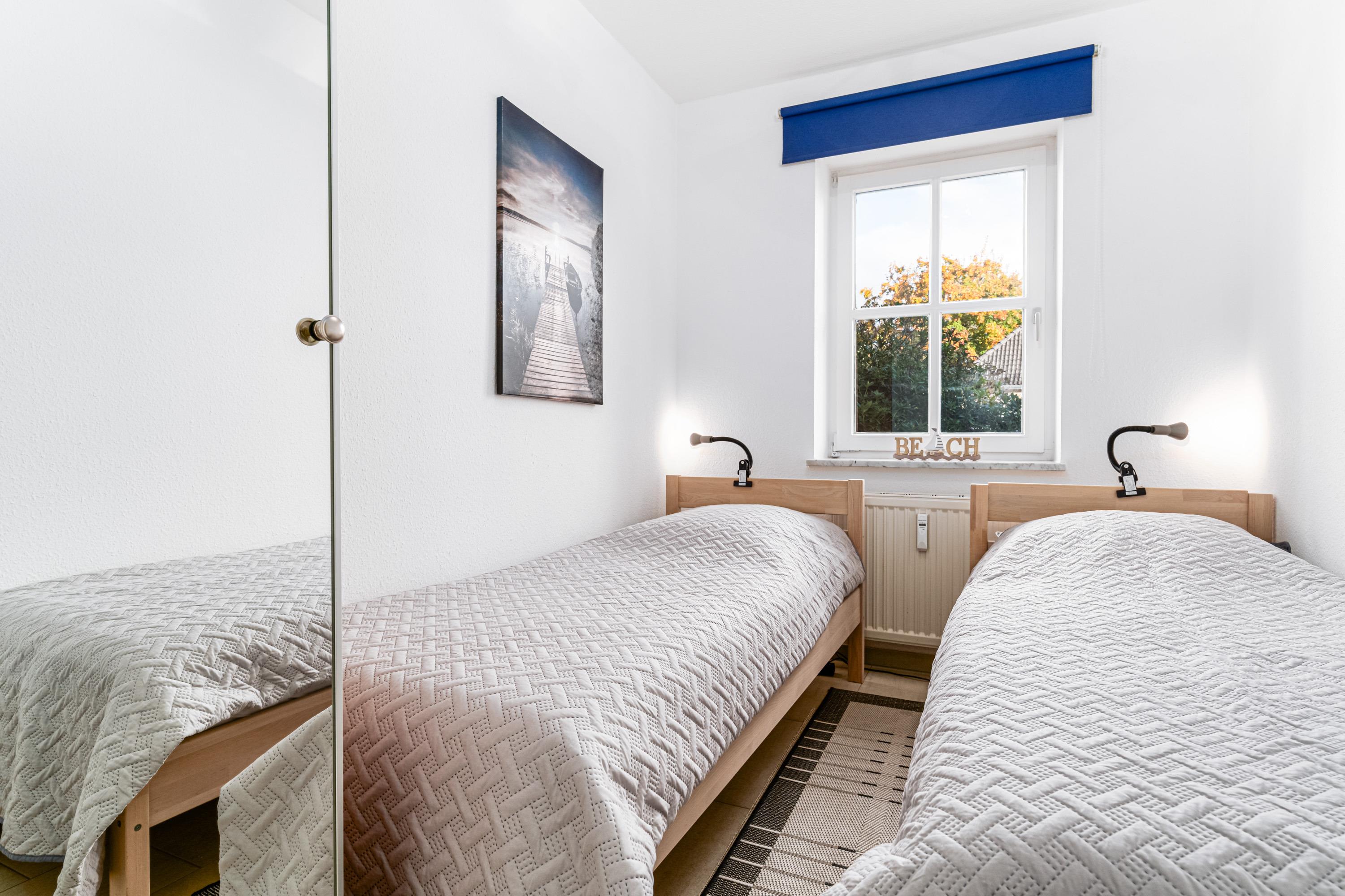Im separaten Schlafzimmer können sich bis zu zwei weitere Personen in den zwei Einzelbetten (90 cm x 200 cm) vom erlebnisreichen Urlaubstag erholen.