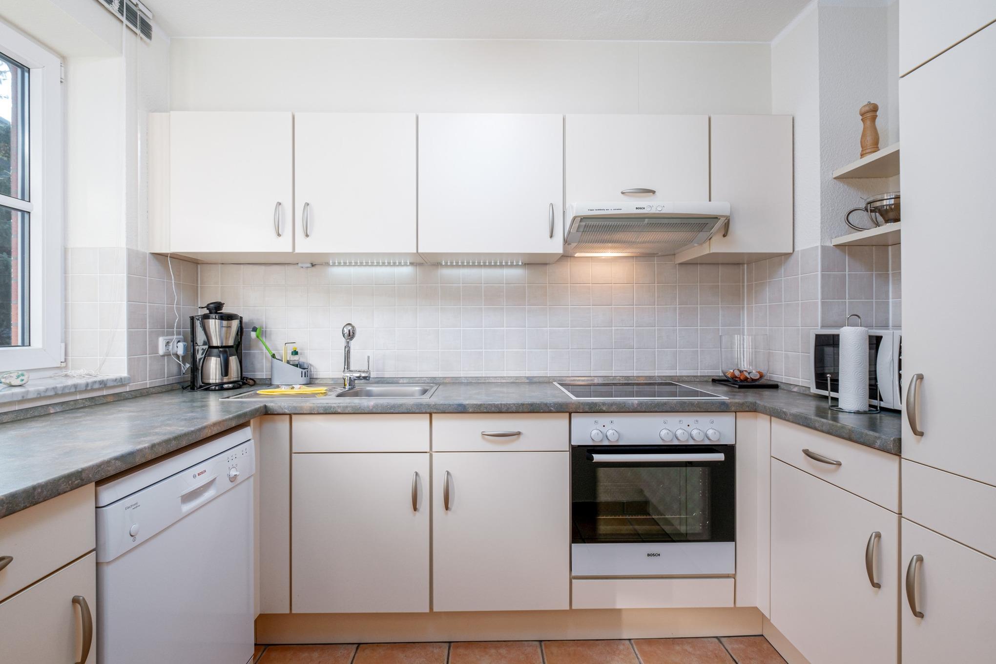 Die Einbauküche ist mit Geschirrspüler, Mikrowelle sowie einer Kaffee- und Nespressomaschine sehr gut ausgestattet.