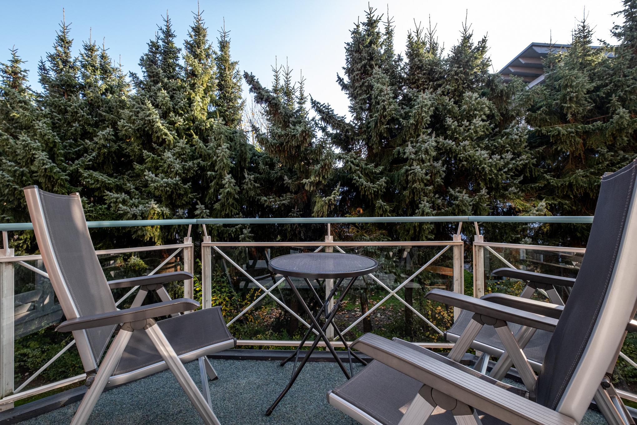 Von hier aus gelangen Sie auch auf den nach Osten ausgerichteten Balkon, von dem aus Sie ins "Grüne" blicken.