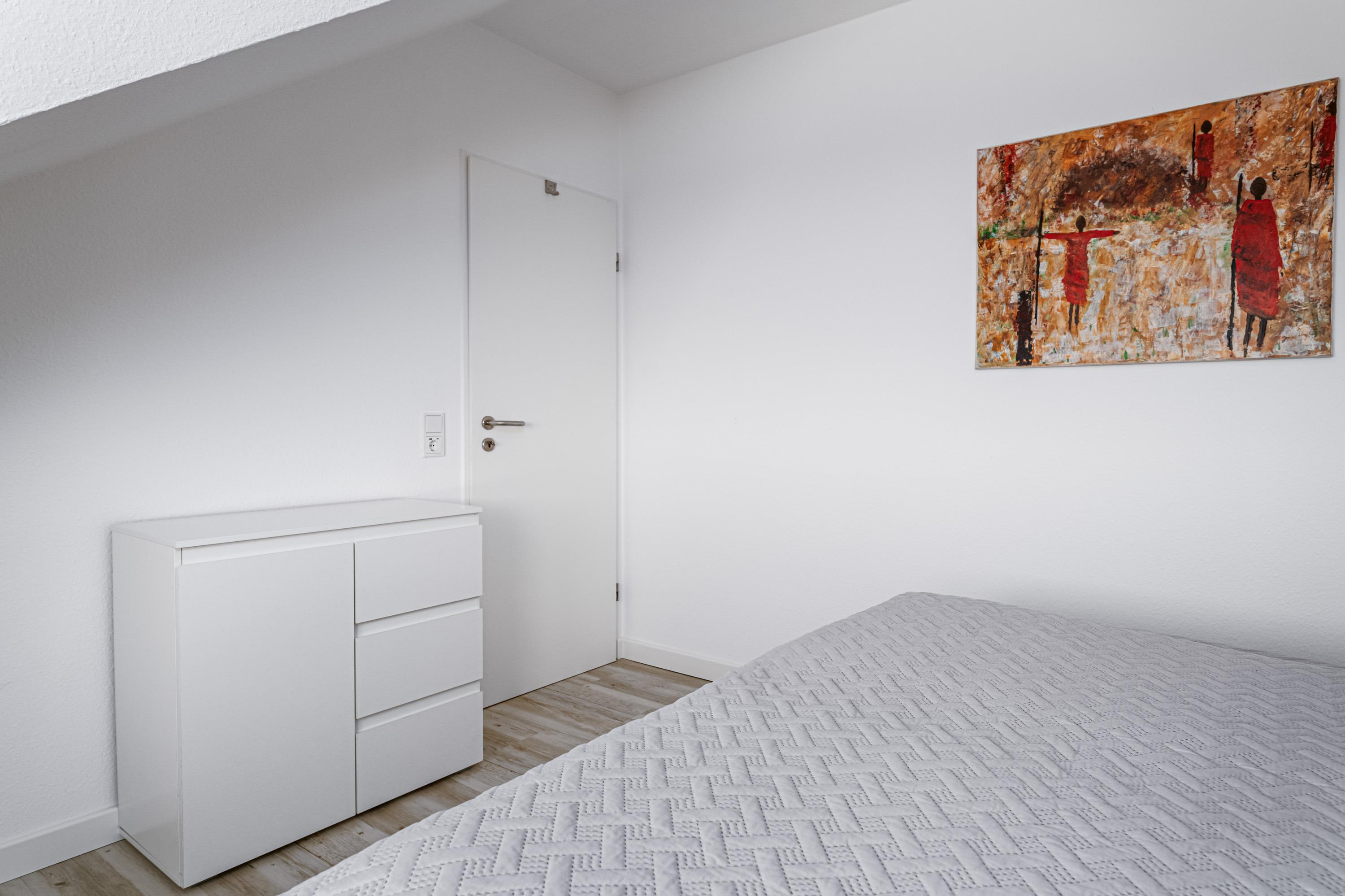 In den beiden Schlafzimmern finden bis zu 4 Personen einen gemütlichen Platz zum Schlafen. Ein Hauptschlafzimmer ist mit einem Boxspringbett (180 cm x 200 cm) und das zweite Schlafzimmer mit 2 Einzelbetten (je 90 cm x 200 cm) ausgestattet. Im zweiten Schlafzimmer ist zudem ein weiterer Tisch mit 4 Stühlen vorhanden, der "remote working", Schulaufgaben oder Spiele außerhalb des Wohnzimmers ermöglicht.