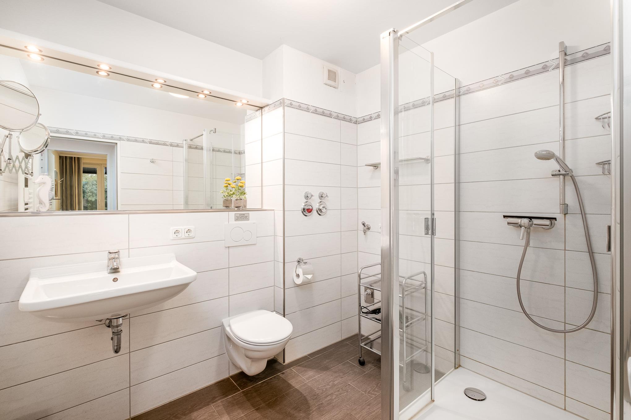 Die Dusche ist modern und ein Fön steht im Badezimmer ebenfalls zur Verfügung.