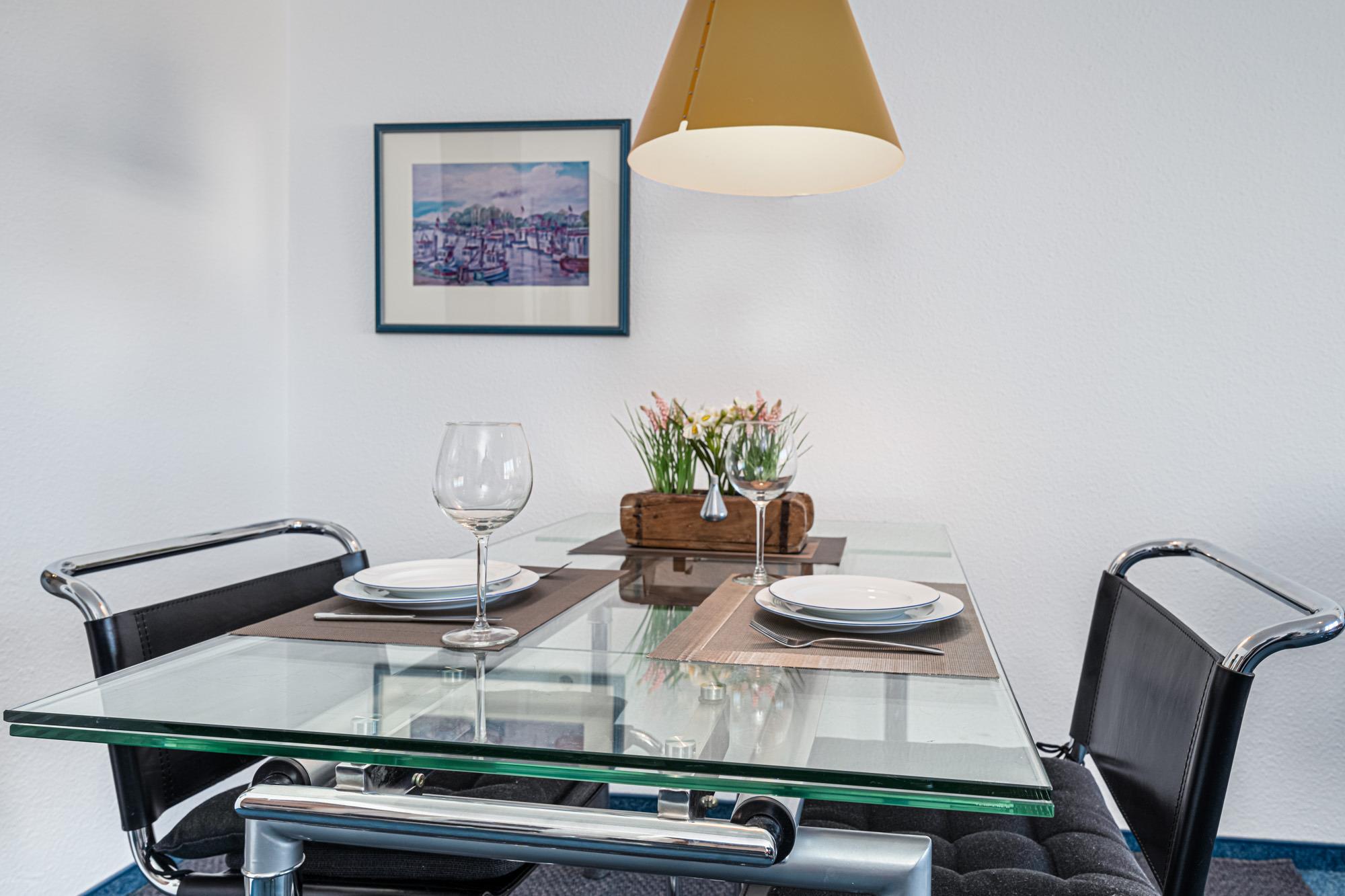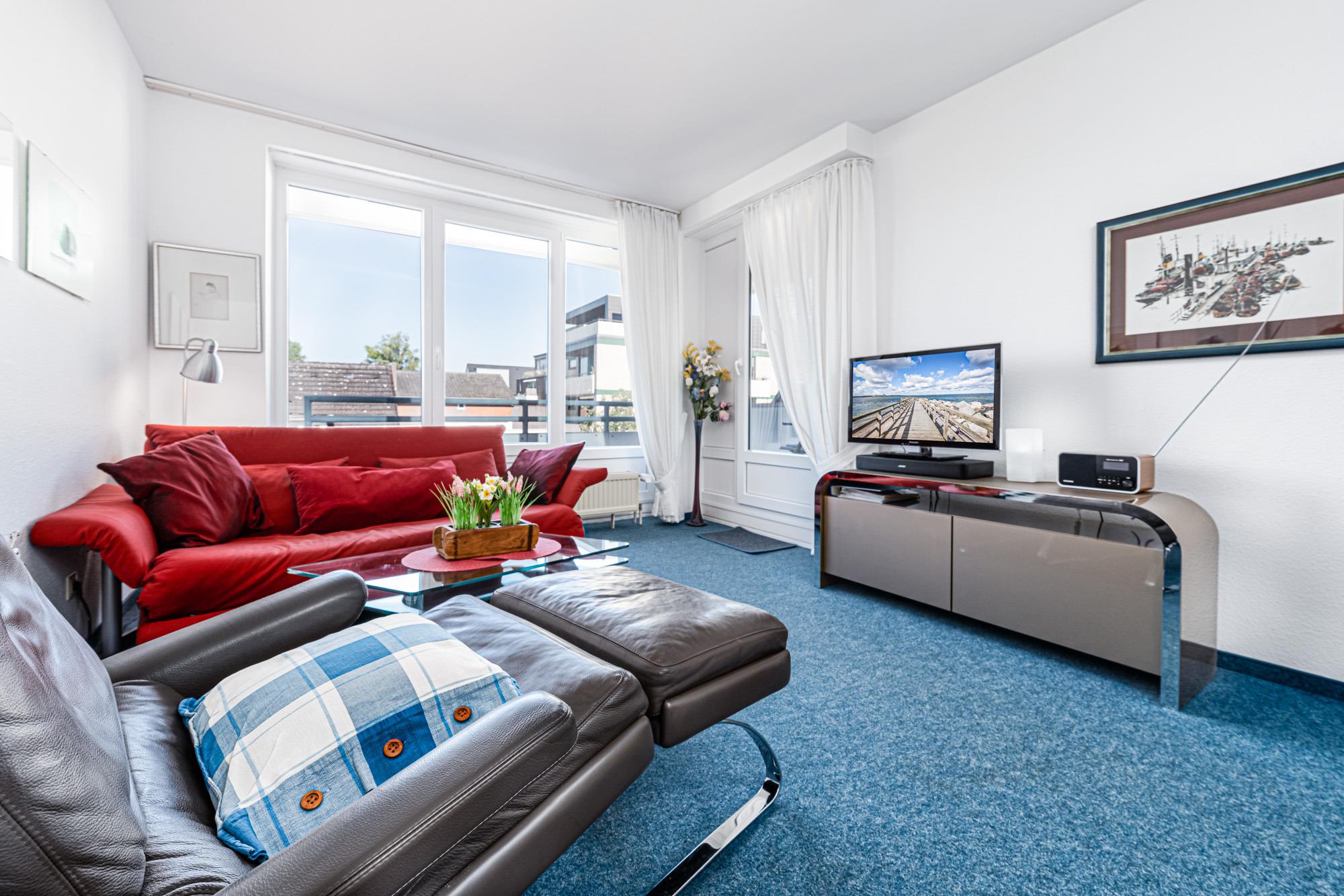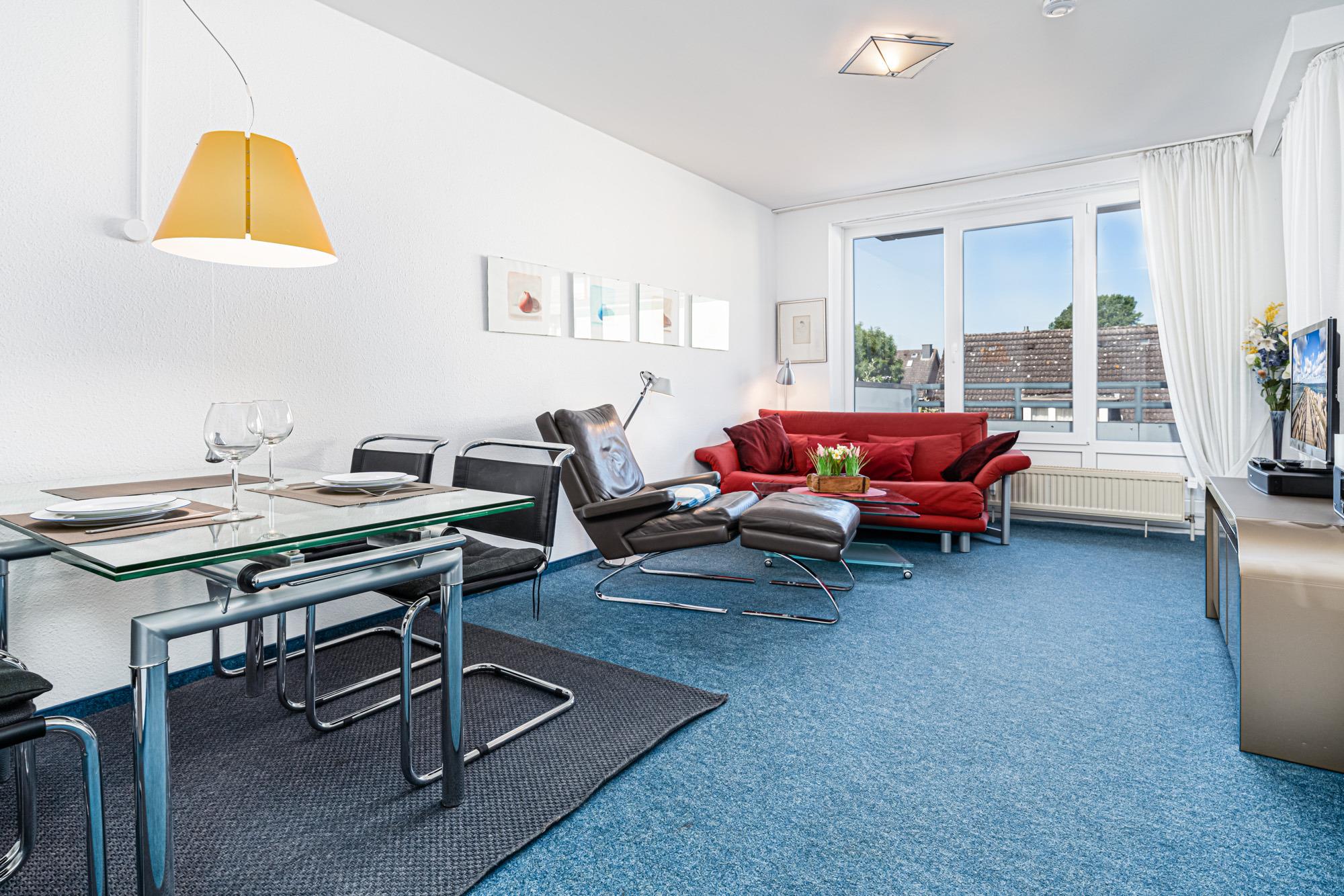 Die gemütlich eingerichtete, 50m² große Niendorf Ferienwohnung Nr. 21 im 1. OG mit Tiefgaragenstellplatz ist für bis zu 2 Personen ausgelegt. Im Wohnzimmer befindet sich eine Schlafcouch mit Kabel-TV und HiFi-Anlage.