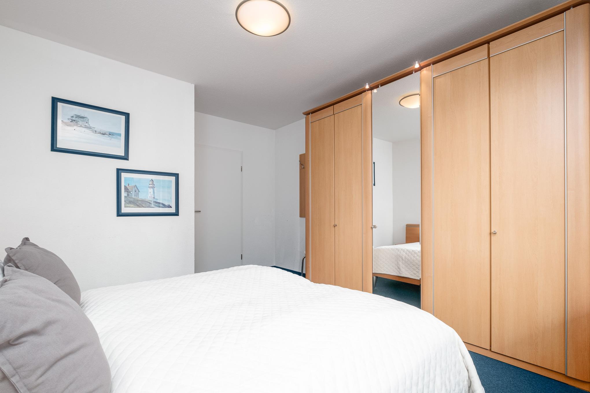 Das bequeme Schlafzimmer mit Doppelbett (2 x 90 cm x 200 cm) verfügt über einen großen Kleiderschrank mit Spiegel sowie einen weiteren Kabel-TV.