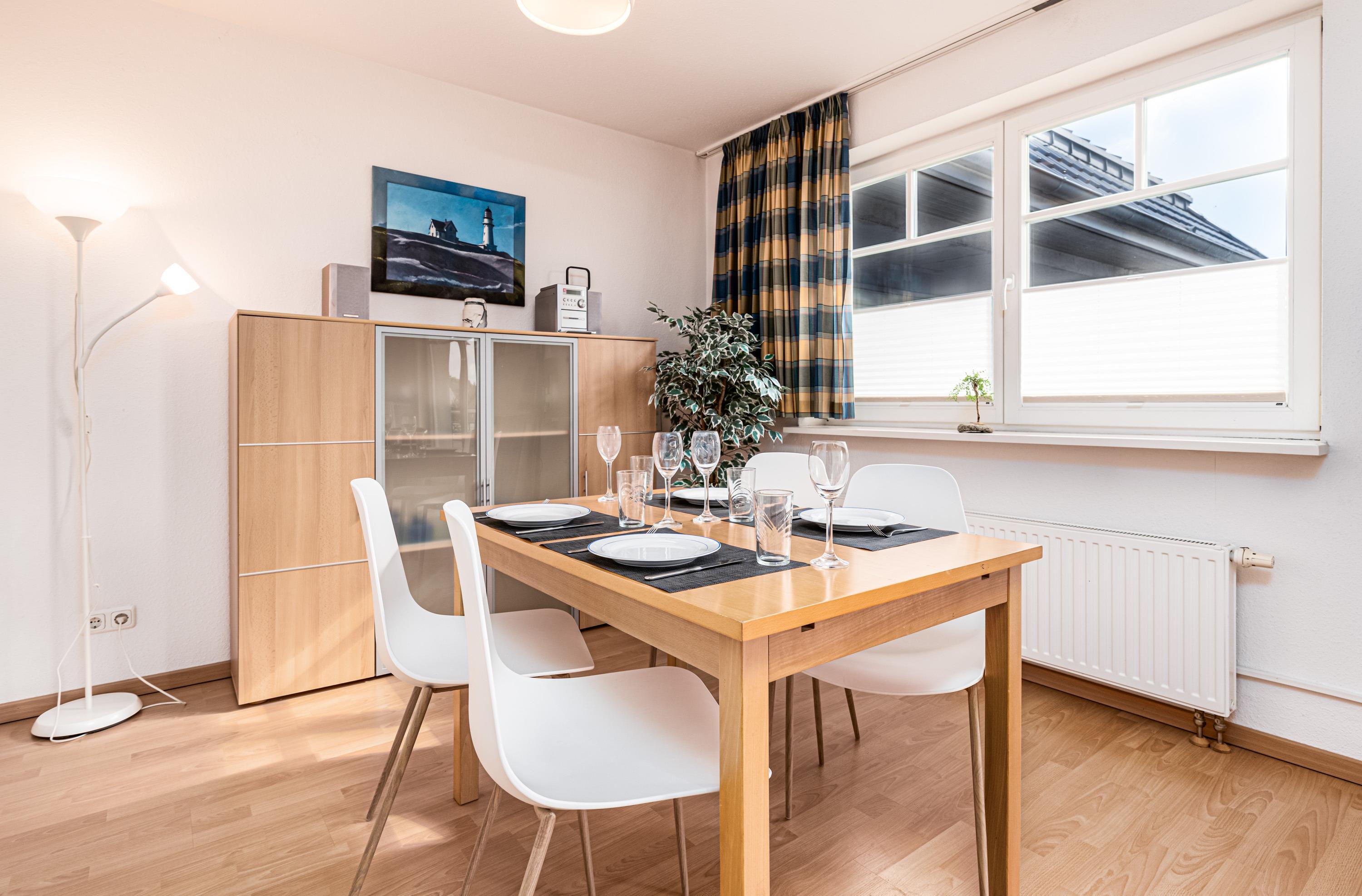 Internetzugang per WLAN und ein Telefon, ein Safe, ein separat abschließbarer Kellerraum mit Platz für Fahrräder und E-Bikes und sogar einem E-Anschluss sowie ein PKW-Stellplatz komplettieren das sehr gute Angebot dieses Niendorf an der Ostsee Ferienappartements.